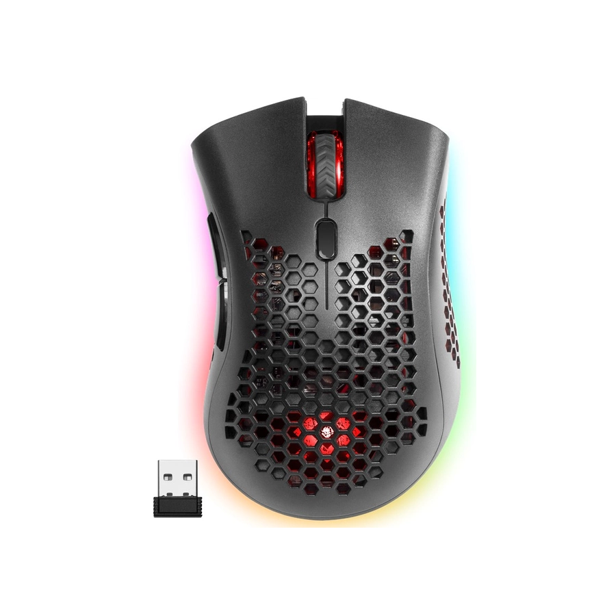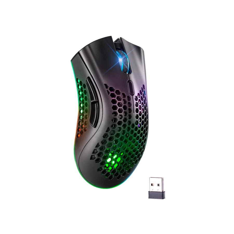 Безпровідна ігрова миша, легкий корпус зручної форми, RGB підсвічування. Вбудований акумулятор ємністю 400 мА*год.