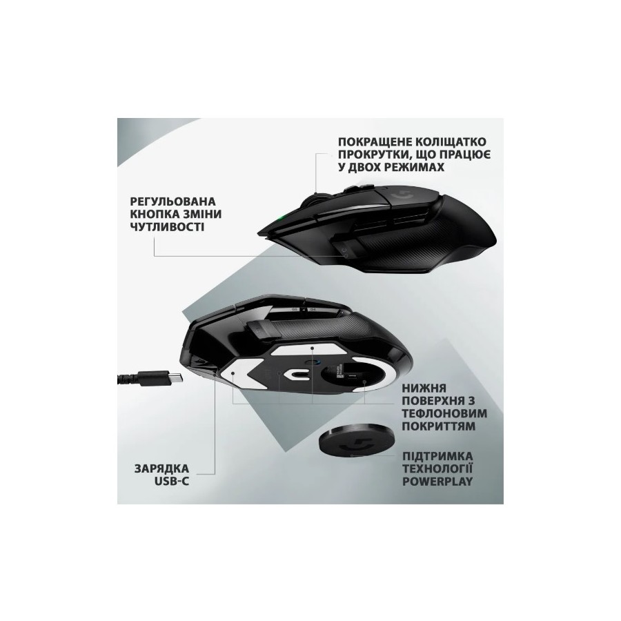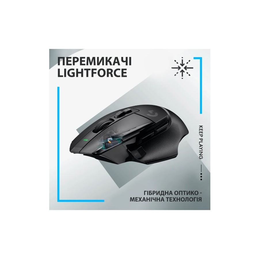 G502 X LIGHTSPEED - останній додаток до легендарної лінійки G502. Він був перероблений і перетворений за допомогою найінноваційніших технологій для геймінгу, включаючи наші перші гібридні перемикачі LIGHTFORCE, бездротову технологію LIGHTSPEED преміум-класу та сенсор HERO 25K. G502 X LIGHTSPEED також сумісний з POWERPLAY, тому він ніколи не розряджається.