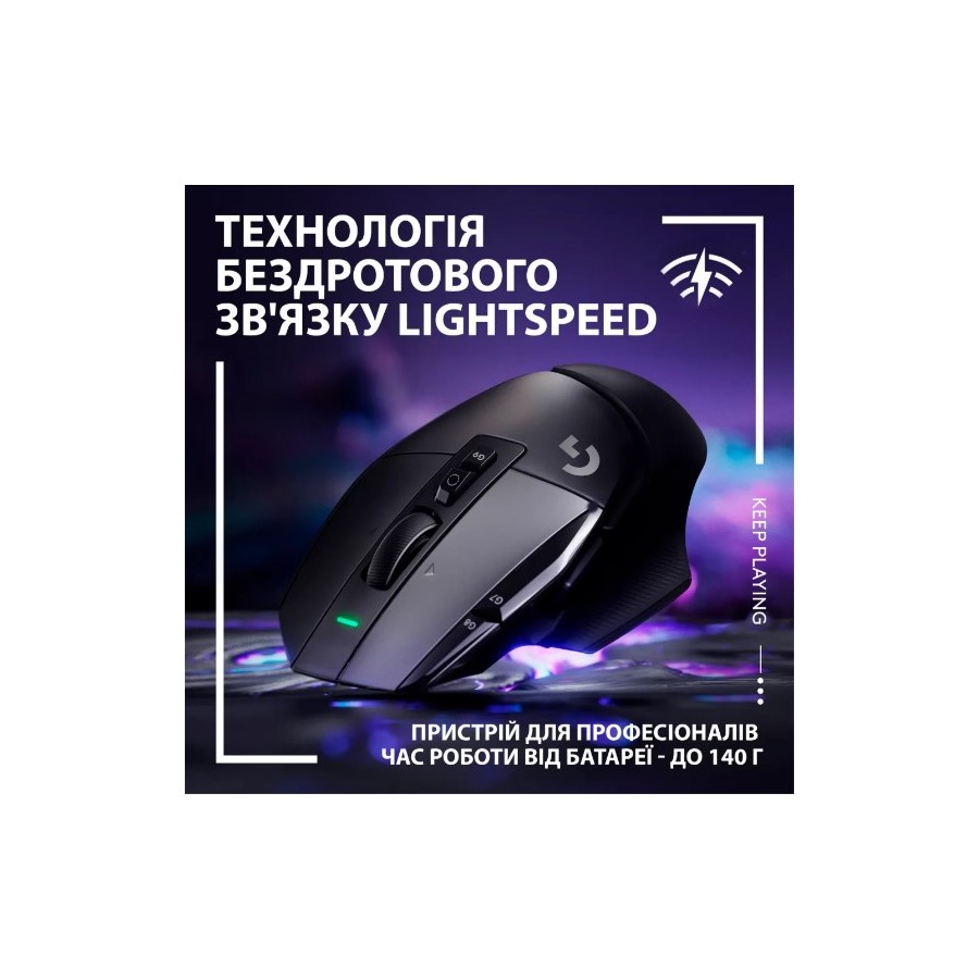 Професійна якість підключення тепер з оновленим протоколом, який забезпечує частоту оновлення на 68% швидше, ніж у попереднього покоління. За допомогою неймовірно ефективної технології LIGHTSPEED, G502 X LIGHTSPEED також досягає до 140 годин автономної роботи від одного заряду батареї.