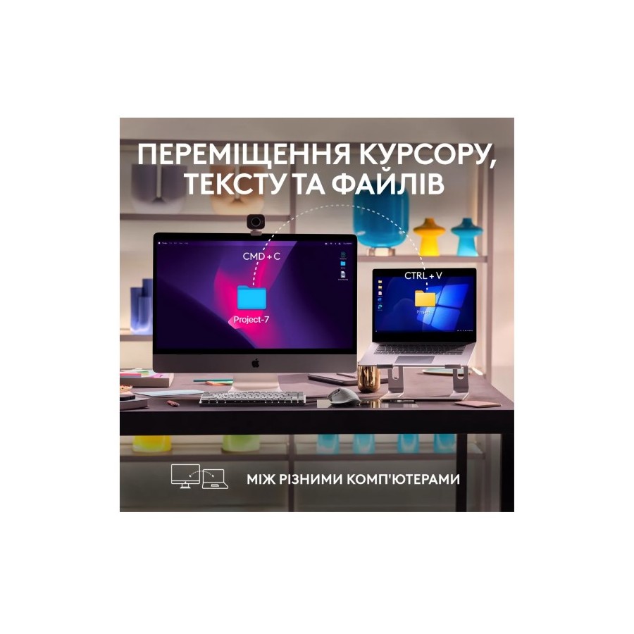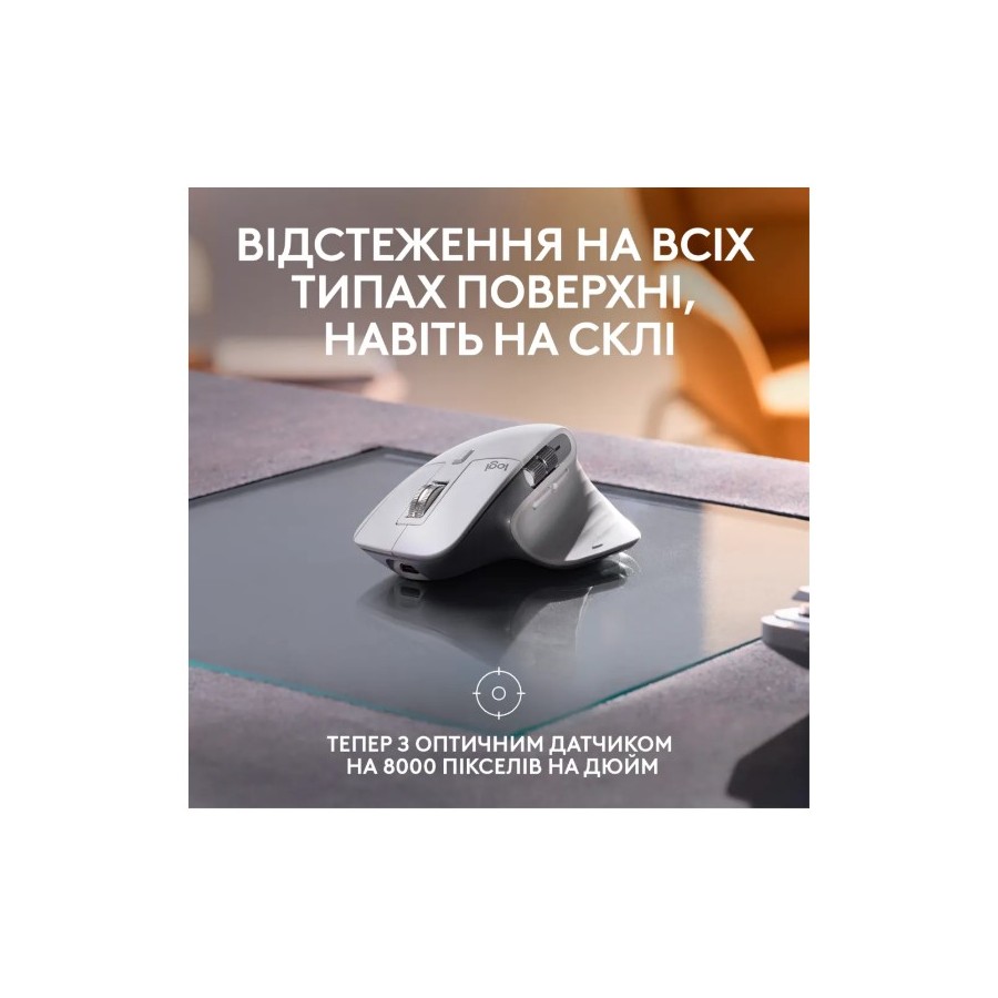 Працюйте на моніторах з великою роздільною здатністю з оптичним сенсором точності 8 000 DPI, який відстежує практично в будь-якому місці - навіть на склі.. Налаштуйте чутливість відстеження у Logi Options+.