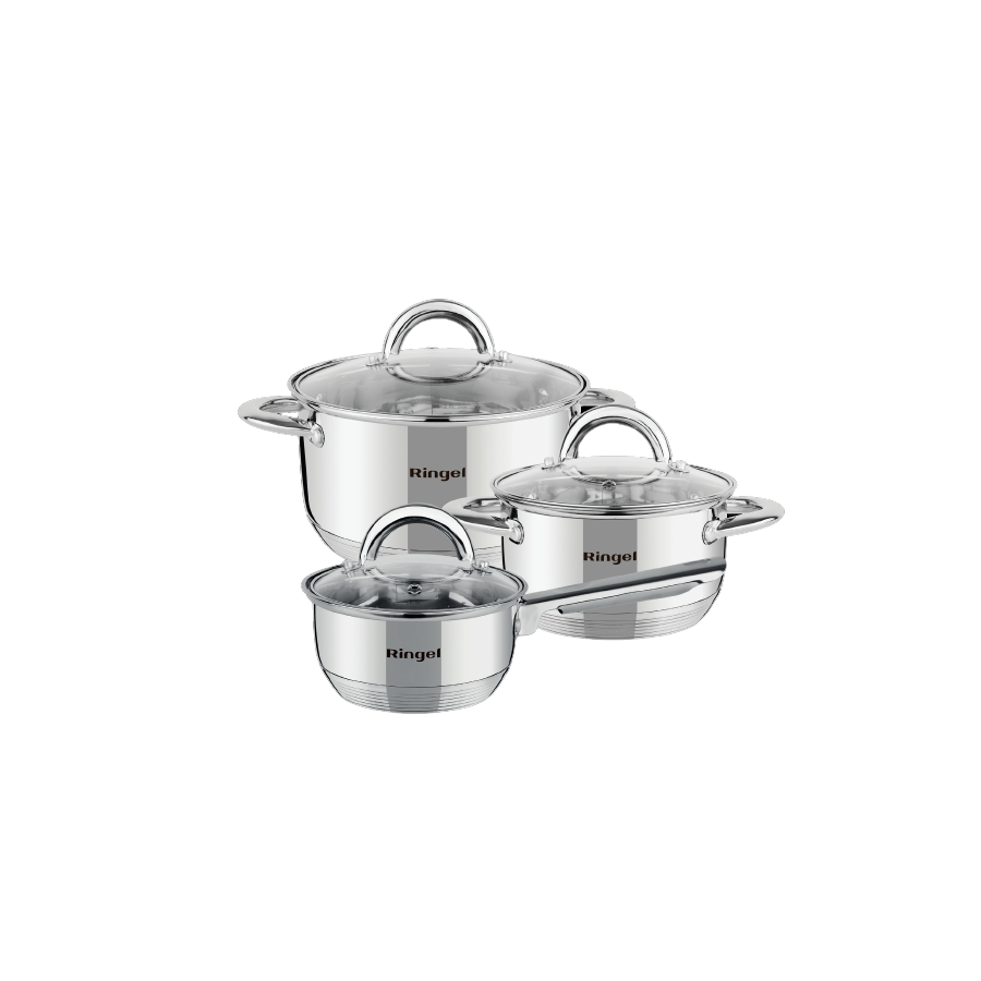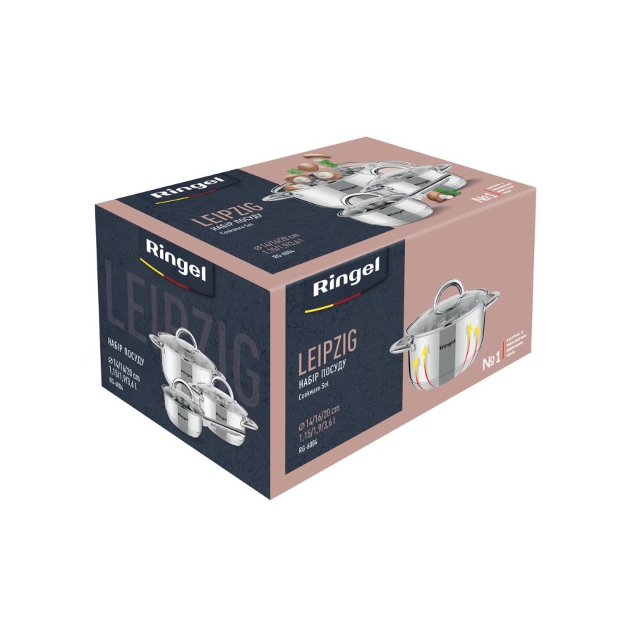 Набір посуду RINGEL Leipzig мінімальний набір для кухні. У нього входить ківш 1,15 л, каструлі 1,9 л, 3,6 л.