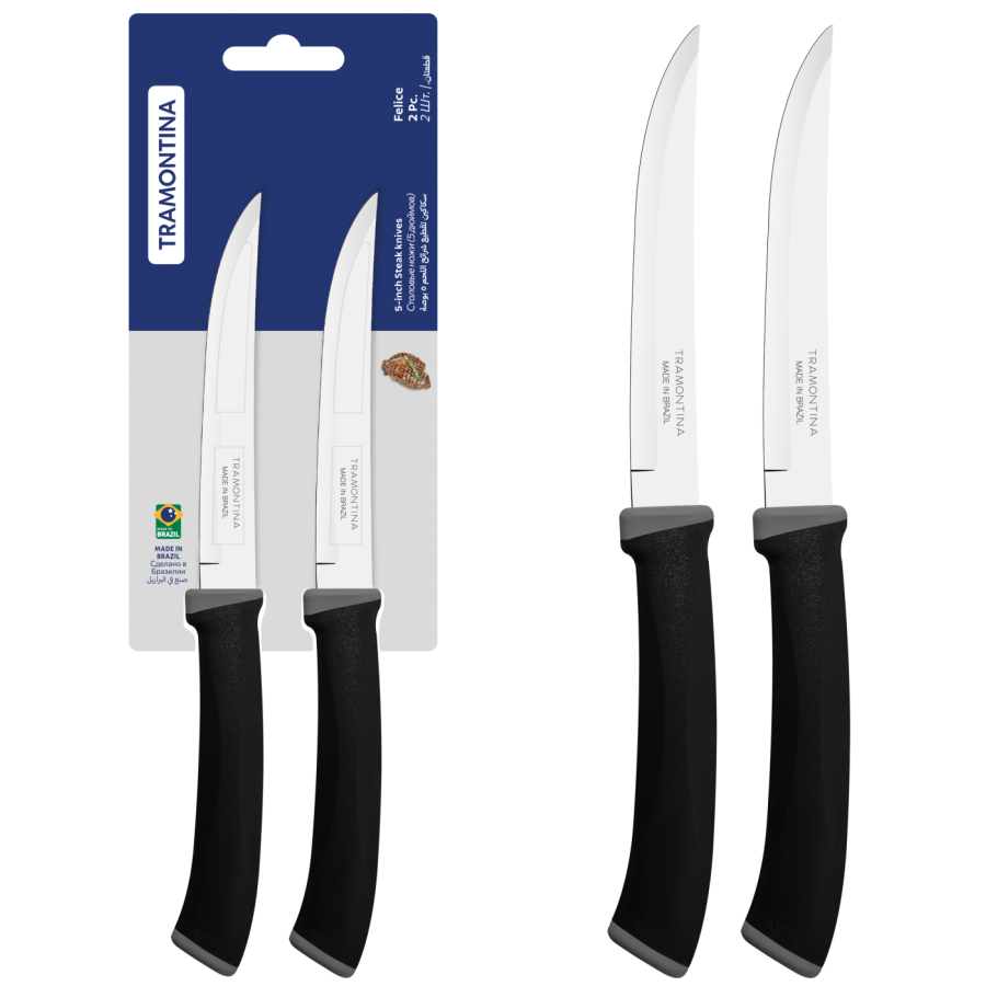 Набори ножів TRAMONTINA FELICE black ніж д/стейка гладкий 127мм 2шт (23493/205)