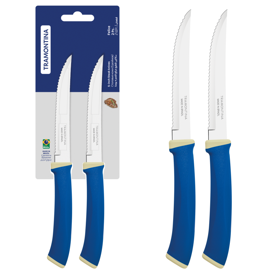 Набори ножів TRAMONTINA FELICE blue ніж д/стейка зубчатий 127мм 2шт (23492/215)