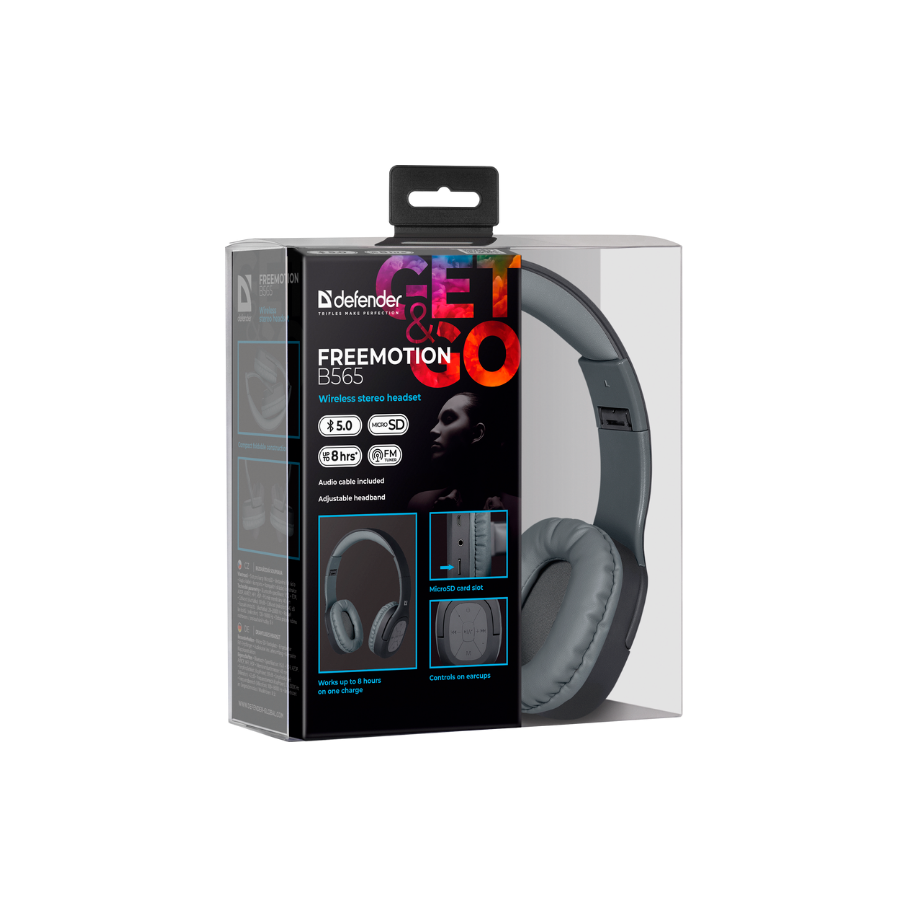 З гарнітурою DEFENDER FreeMotion B565 ви отримаєте більше яскравих вражень від прослуховування музики та подкастів. Оснащена укрупненими динаміками з професійними налаштуваннями, високочутливим мікрофоном, м'якими амбушюрами та пружним оголов'ям гарнітура стала еталоном якості звуку та комфорту. Підключення по Bluetooth 5.0 дарує до 8 годин повної свободи, а слот для карт пам'яті Micro SD перетворює гарнітуру на MP3 програвач.