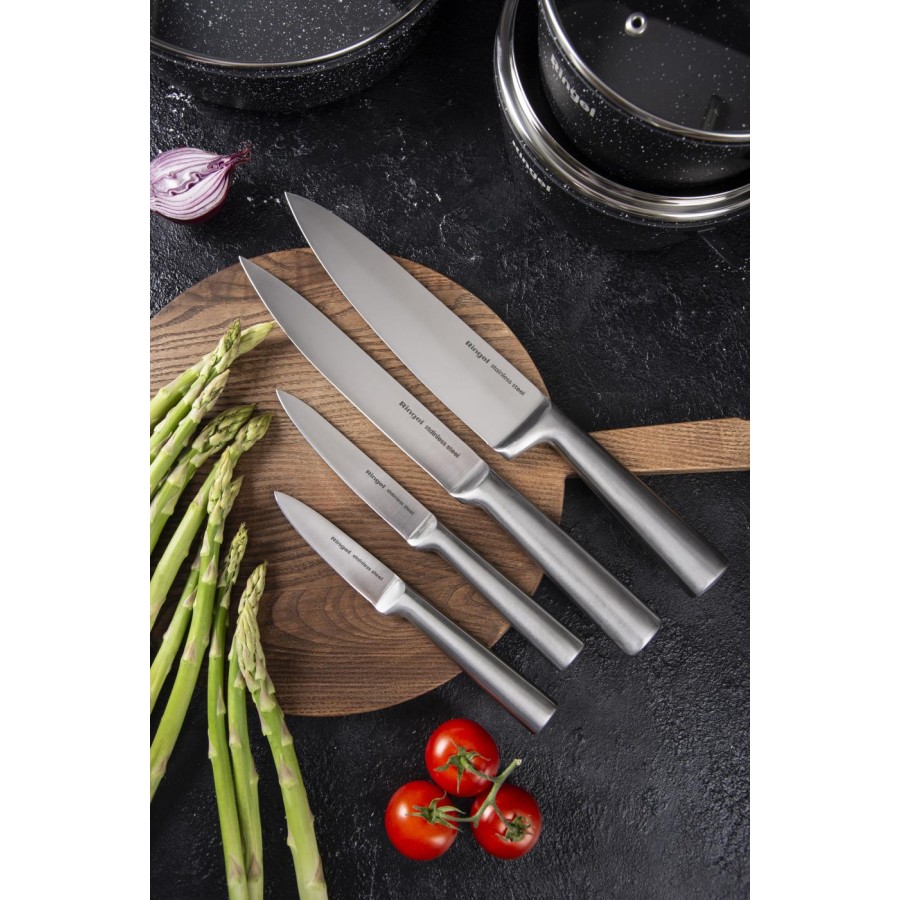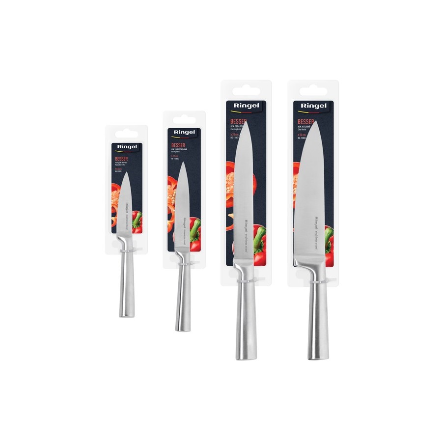 Корпус ножів серії BESSER торгової марки Ringel виготовлений з нержавіючої сталі методом суцільного лиття. Ножі мають правильну геометричну форму та добре збалансовані. Ручка додатково має сатинове полірування.