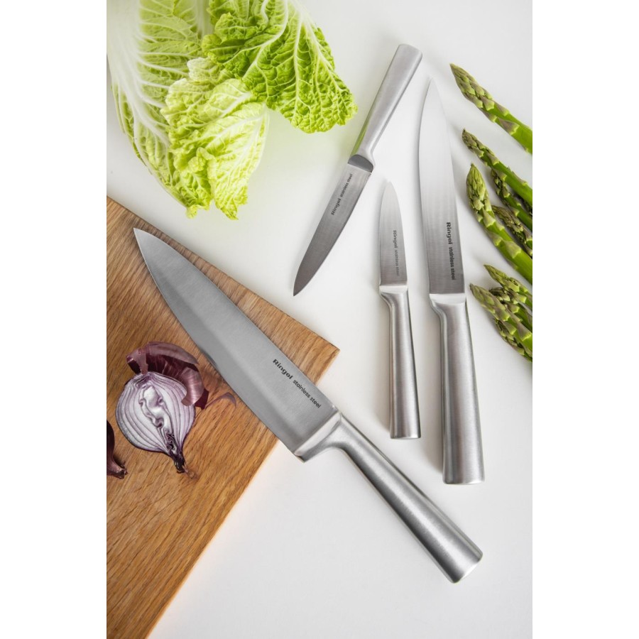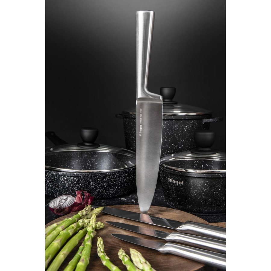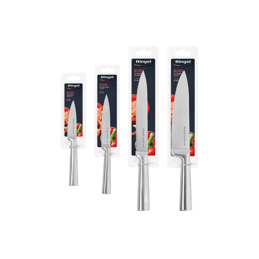 Корпус ножів серії BESSER торгової марки Ringel виготовлений з нержавіючої сталі методом суцільного лиття. Ножі мають правильну геометричну форму та добре збалансовані. Ручка додатково має сатинове полірування.