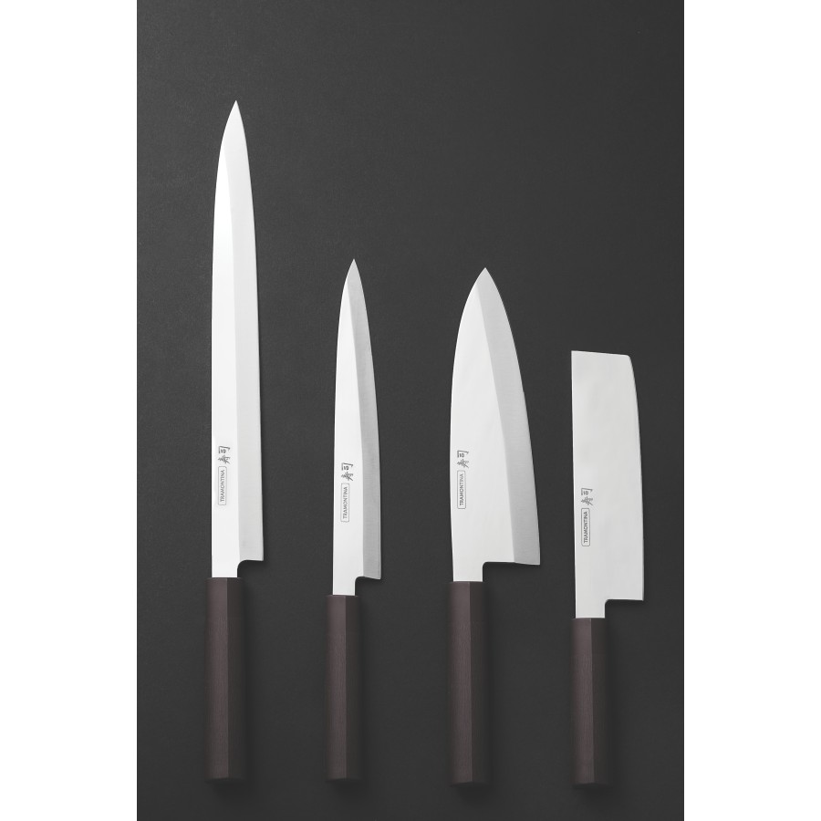Ножі серії Sushi Silver відносяться до професійних високоякісних ножів, завдяки особливому підбору матеріалів і технології виготовлення. Створені майже дві тисячі років тому, суші перетинають століття як один з найвишуканіших проявів японської кухні. Це давня традиція, яка передбачає високоточні розрізи та надтонкі поєднання. А Tramontina, що має віковий досвід у виробництві ножів, тепер пропонує спеціальну лінію, присвячену цьому прекрасному мистецтву.