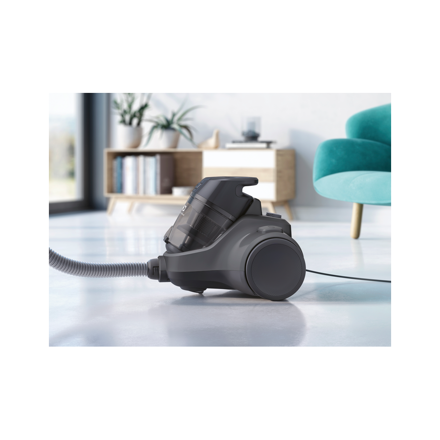 Для ефективної фільтрації у цьому безмішковому пилососі використовується 4-ступінчаста система. Двоетапна циклонічна фільтрація поділяє крупні та дрібні частинки для підвищення якості та ефективності збирання.