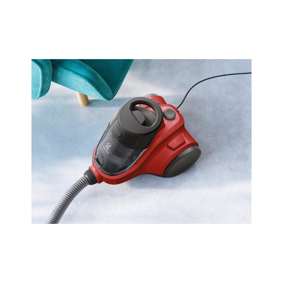 Контейнер відрізняється високою місткістю й утримує до 1,8 літрів, вимагаючи рідшого спорожнення. Одне натискання кнопки розблокування дозволяє акуратно і з легкістю позбутися пилу.