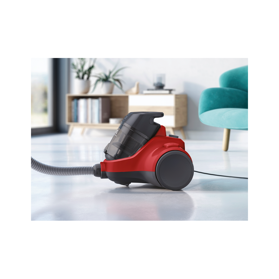 Для ефективної фільтрації в цьому безмішковому пилососі використовується 4-ступінчаста система. Двоетапна циклонічна фільтрація розділяє великі та дрібні частинки для підвищення якості та ефективності прибирання.