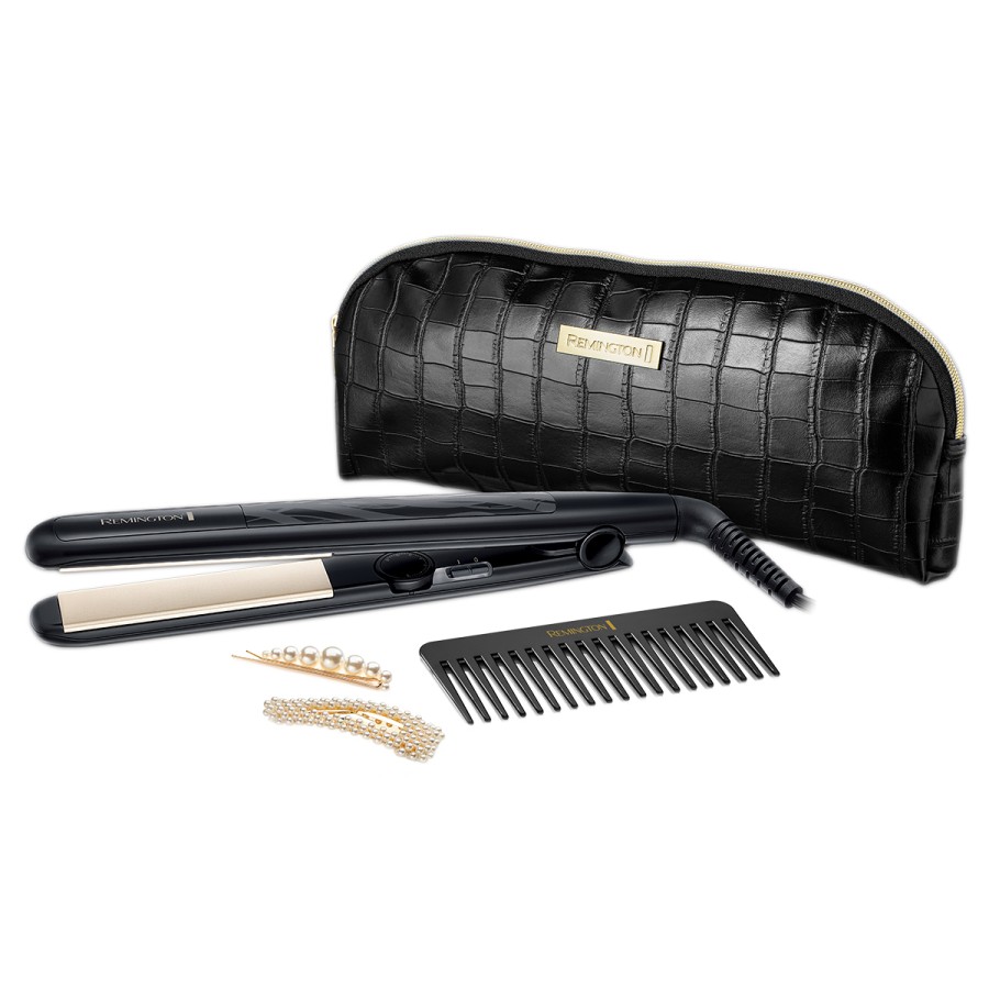 Стильний набір S3505GP - це ідеальний подарунок для вас або ваших близьких і друзів до будь-якого свята. У комплекті: випрямляч для волосся з усіма сучасними функціями, сумочка для зберігання, виконана з преміум-матеріалів, гребінець і 2 трендові шпильки для волосся.