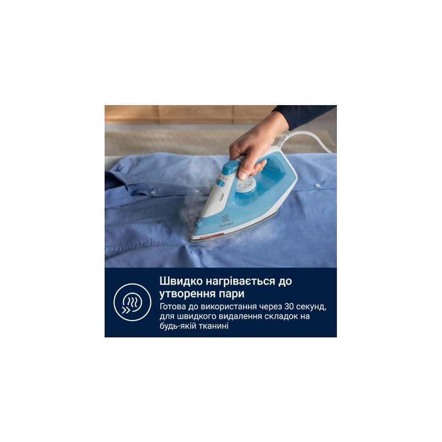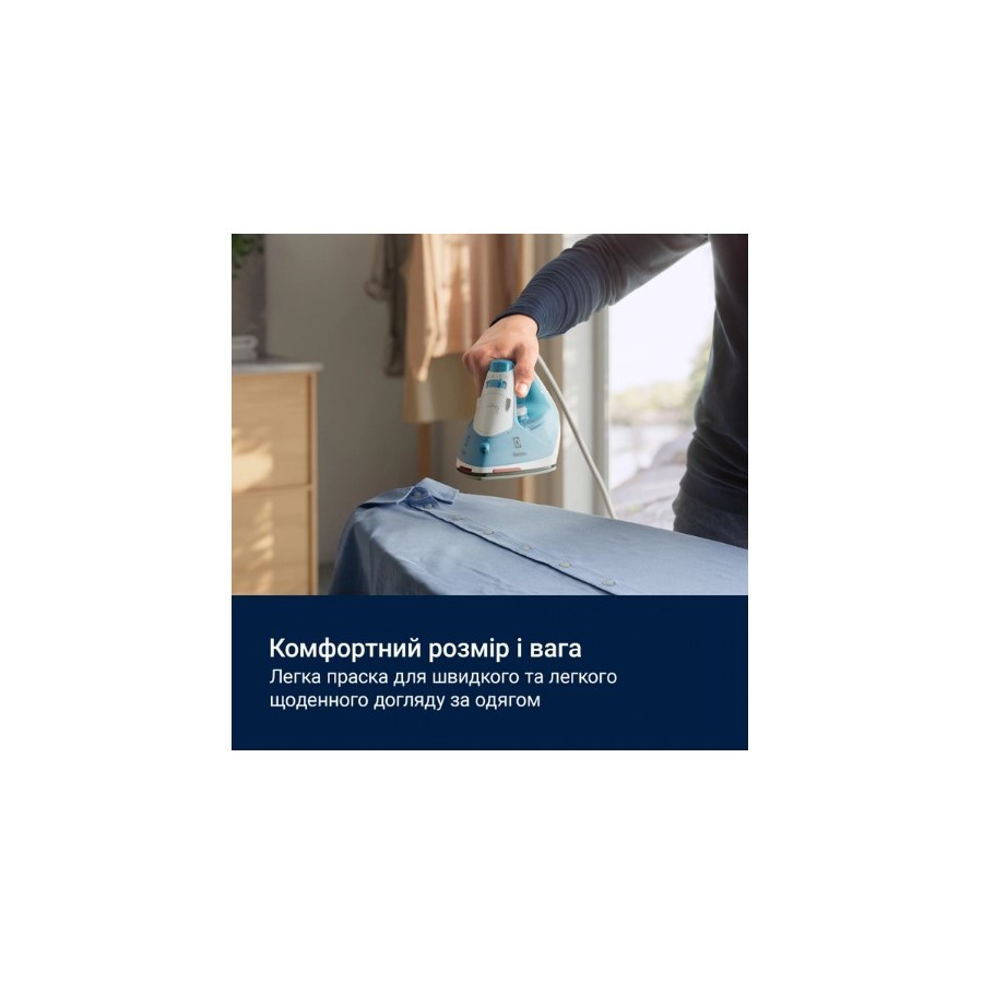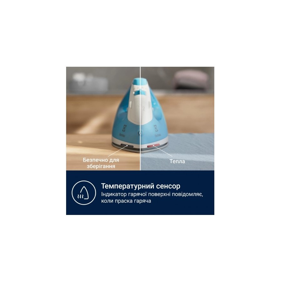 Місткість резервуара для води становить 250 мл, що достатньо для тривалої роботи без частих доливів. Зручний термостат та індикація гарячої поверхні роблять праску безпечною у використанні. Модель важить всього 1,05 кг, що забезпечує легкість та маневреність під час прасування. Праска розроблена у Швеції, що гарантує високу якість та надійність, а його компактні розміри та стильний колір cerulean роблять його відмінним вибором для повсякденного використання.
