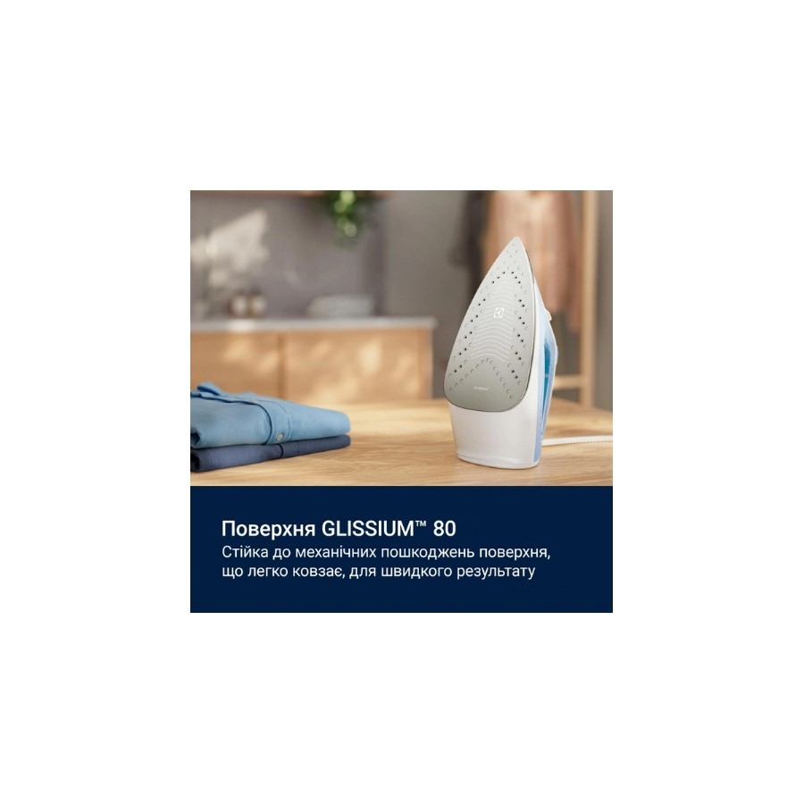 Парова праска Electrolux E5SI2-4CB із серії Care 500 створена для комфортного та ефективного прасування із застосуванням сучасних технологій. Потужність 2300 Вт забезпечує швидке нагрівання, і вже через 30 секунд після включення пристрій готовий до роботи з парою. Важливою особливістю моделі є функція вертикального відпарювання, що дозволяє легко впоратися з будь-якими тканинами, включаючи делікатні та важкодоступні місця на одязі. Керамічна підошва Glissium 80™ забезпечує чудове ковзання та стійка до появи подряпин, що гарантує довгий термін служби праски.
