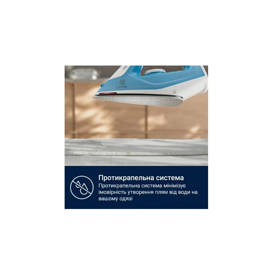 Electrolux E5SI2-4CB оснащений низкою корисних функцій, таких як система "Крапля-стоп", що запобігає протіканню води, та вбудований антикальк-картридж, який мінімізує утворення накипу. Це не тільки продовжує термін служби пристрою, а й підвищує його ефективність. Постійна подача пари 26 г/хв і паровий удар 110 г забезпечують чудове розгладжування навіть щільних тканин. Механічний розпилювач води допомагає поступово зволожувати поверхню одягу, прискорюючи процес прасування.