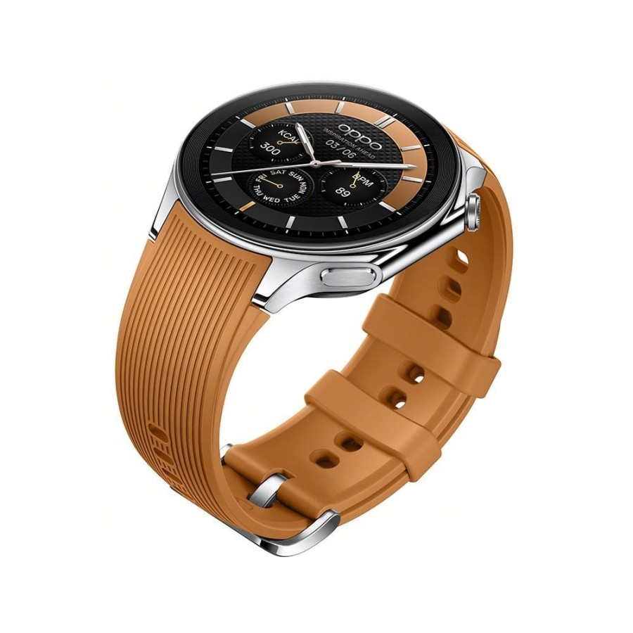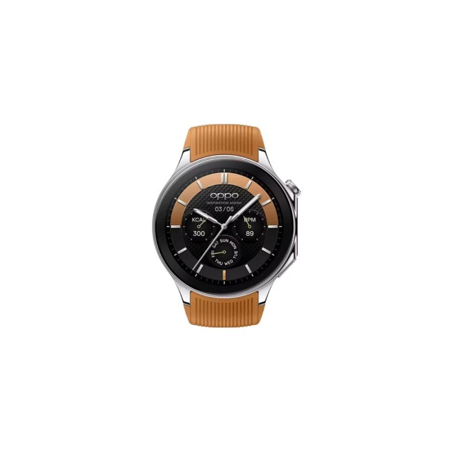 Стримана елегантність цього коричневого фторкаучукового ремінця ідеально поєднується зі сріблястим корпусом годинника. Натхненні самою Землею, контури OPPO Watch X повторюють вигини горизонту, що мерехтять у перші миті світанку. Інтегрований корпус з нержавіючої сталі ретельно відполірований у 178 ступенів, з сатиновою та дзеркальною поверхнею, щоб створити гру світла і тіні.