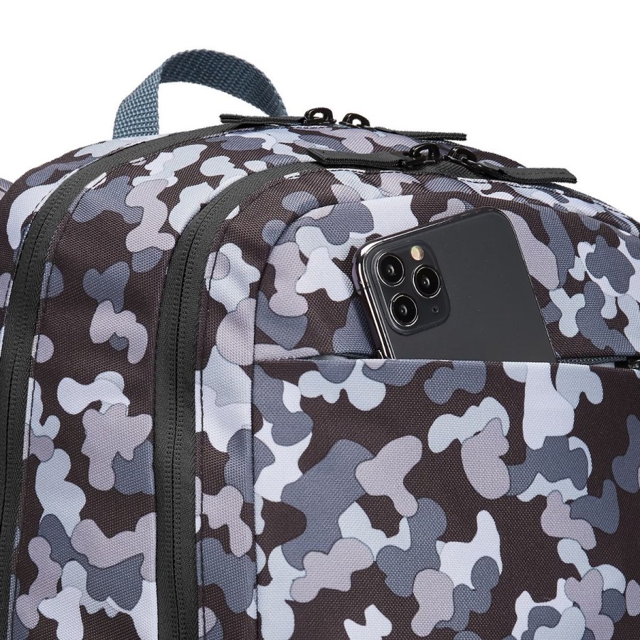 • У передній кишені передбачено місце для невеликих електронних пристроїв і ручок, кишеню для ключів і потаємну кишеню на блискавці