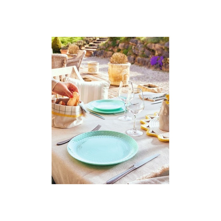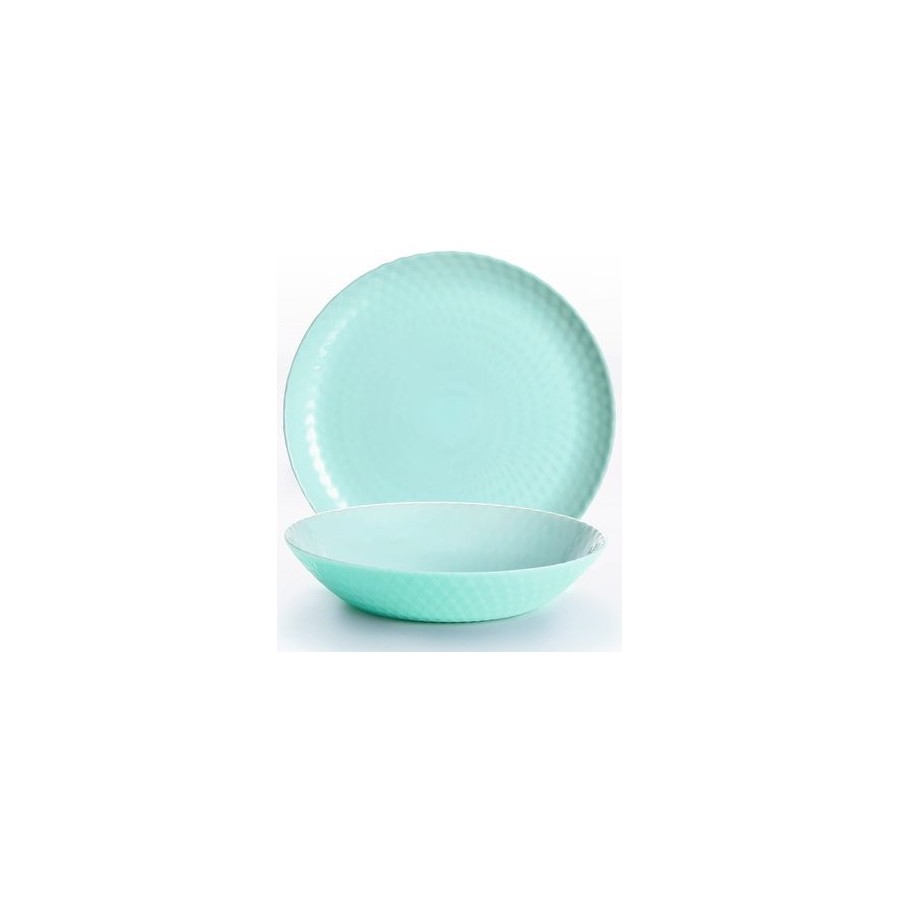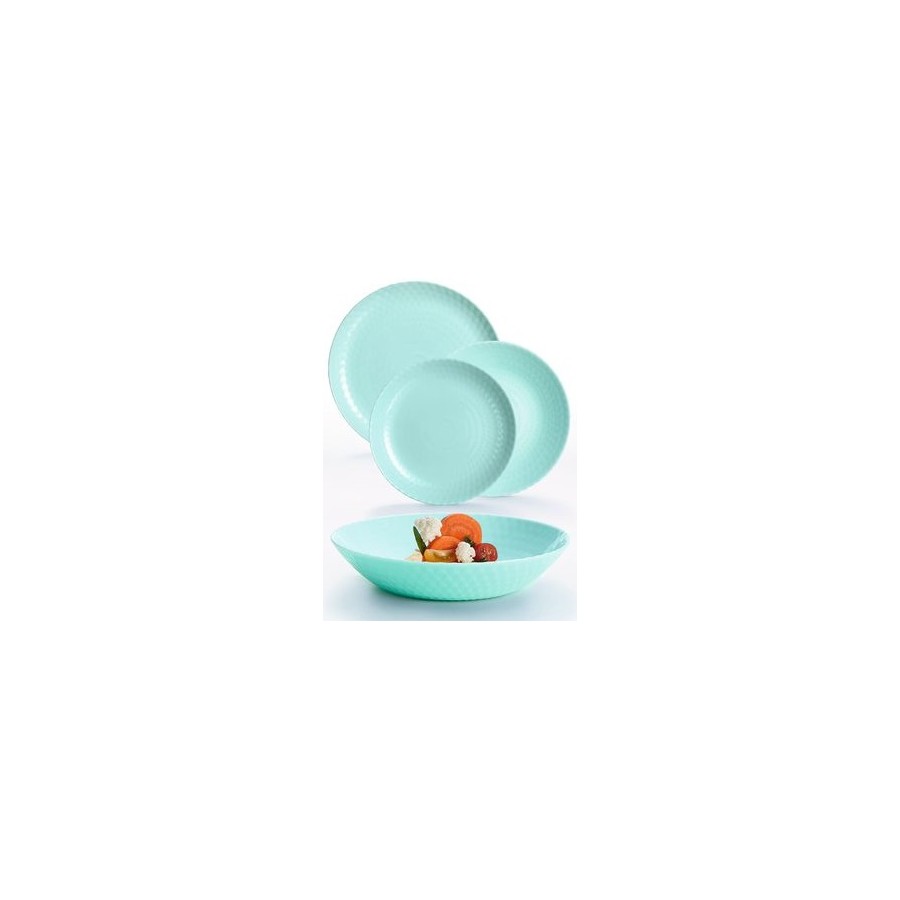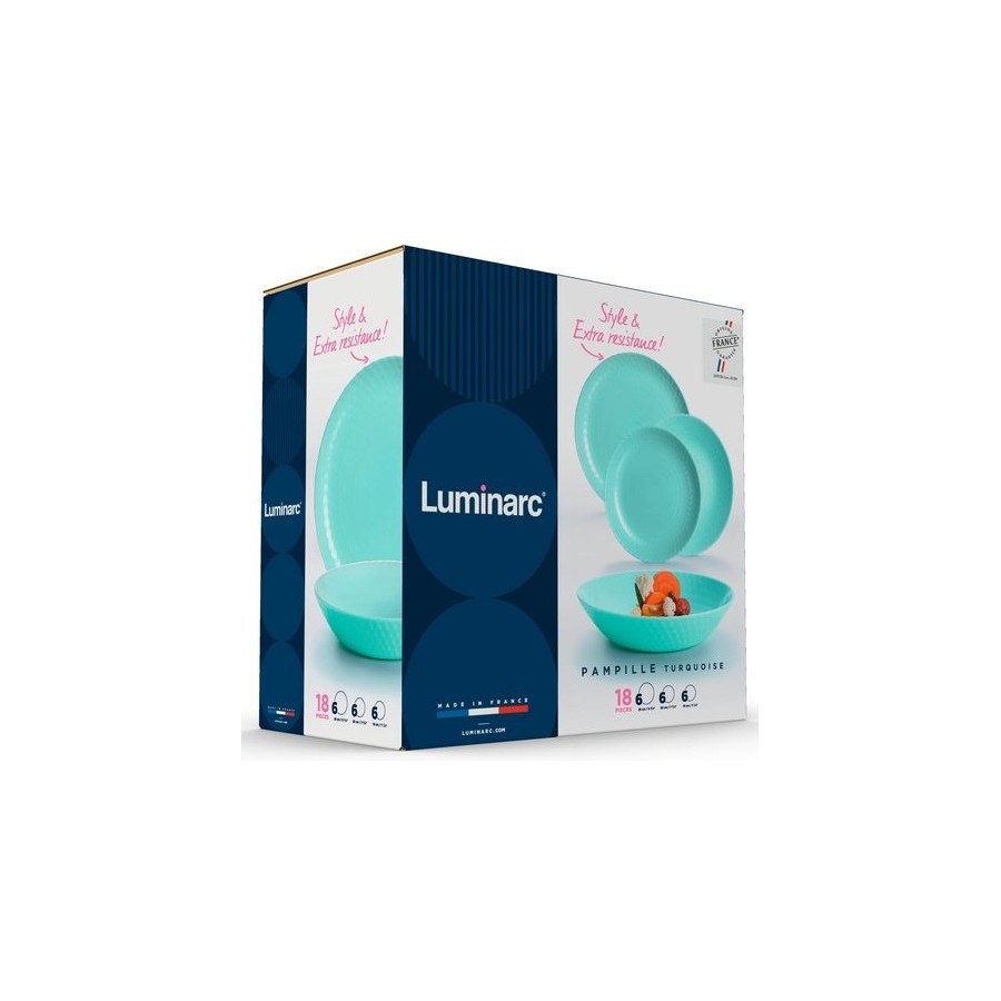 Ця колекція включає: обідні тарілки 25 см, супові 20 см і десертні 19 см, що ідеально поєднуються як з універсальними чашками та келихами, так і з салатниками ТМ Luminarc. Посуд серії Pampille доступний у білому, сірому та бірюзовому кольорах. Його тонований колір у масі гарантує вам незрівнянну довговічність.
