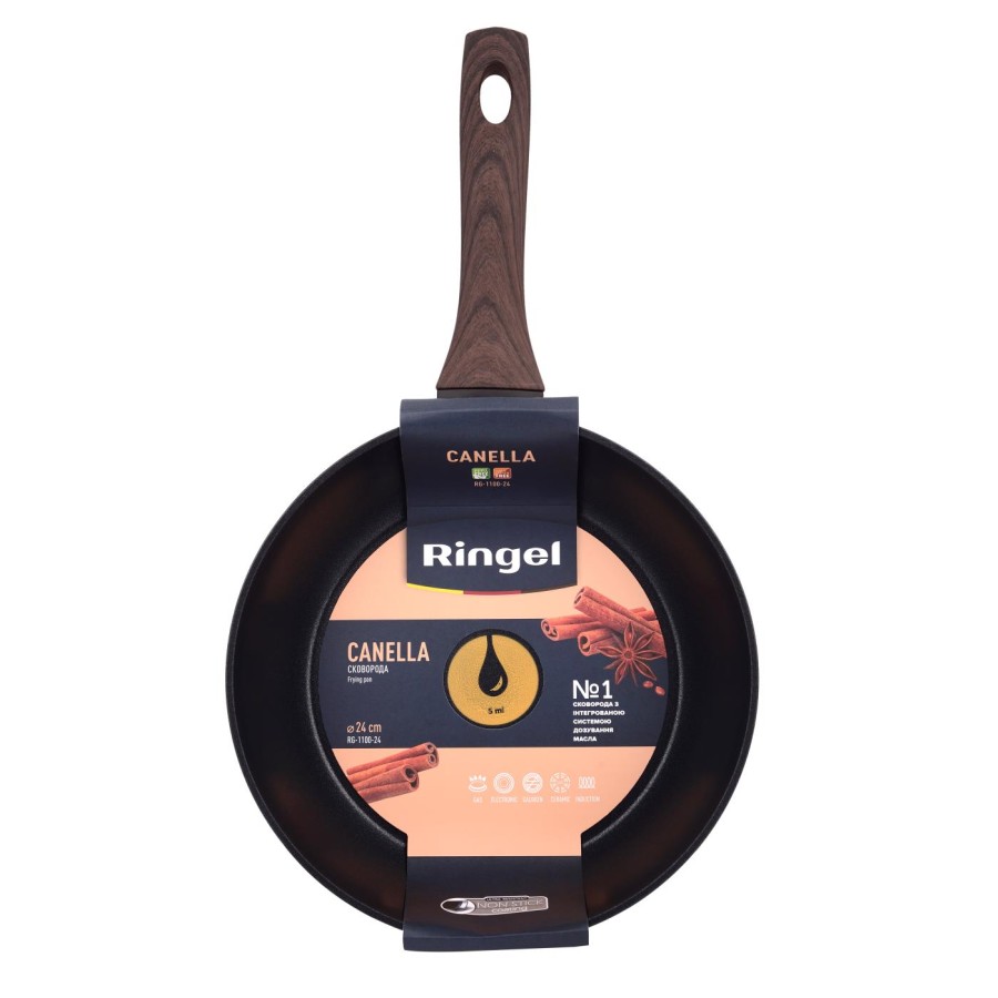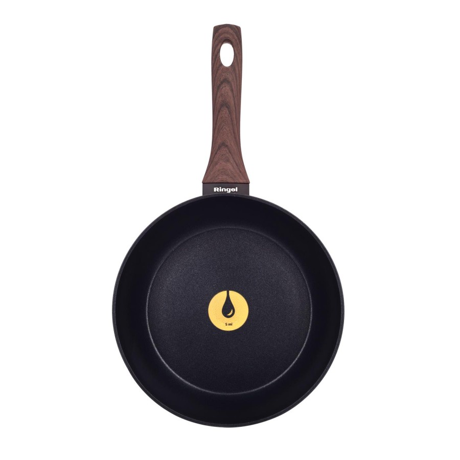 В кожну сковороду RINGEL інтегрована перша в світі система дозування олії. Найменша поділка системи відповідає 5 мл олії, а більша – 10 мл олії. За допомогою цієї системи ви зможете легко та швидко приготувати водночас здорові та смачні страви з використання мінімуму жиру та з максимальним збереженням корисних речовин у страві.
