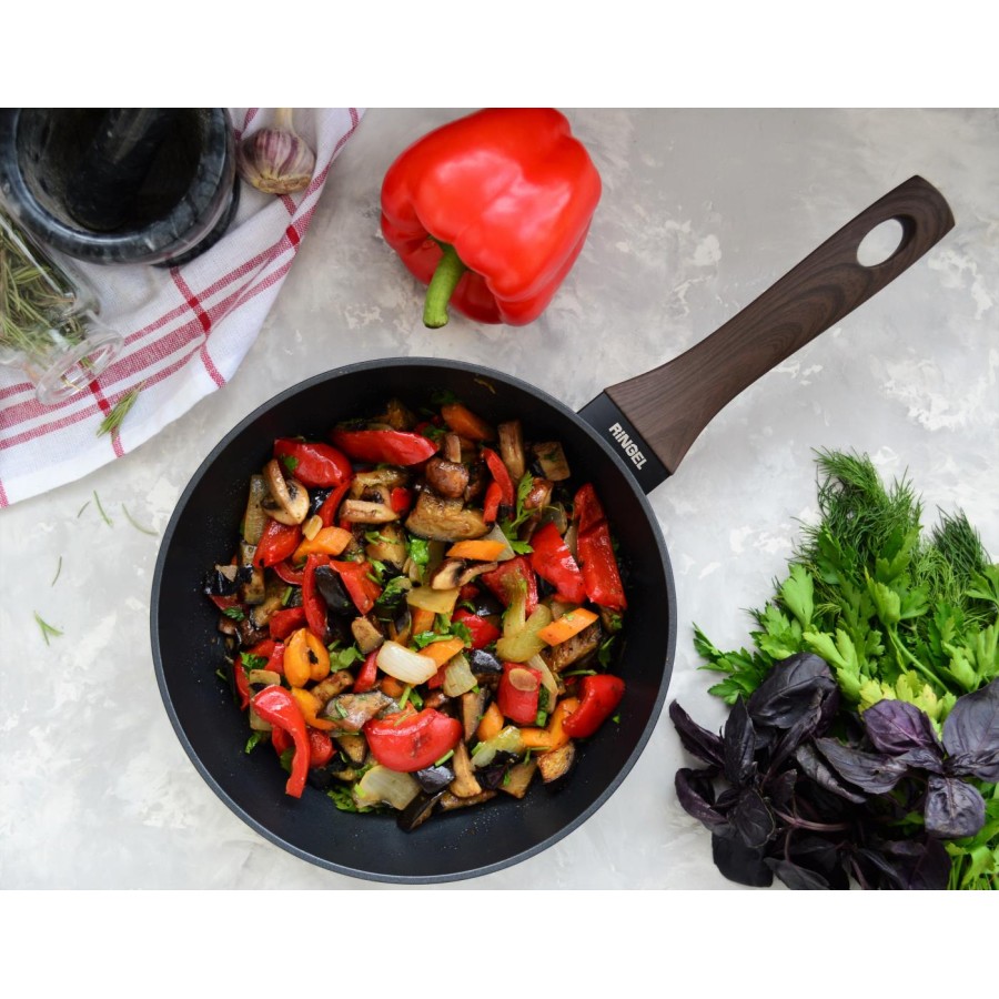 Високі борти висотою 7 см у поєднанні з відмінними властивостями покриття та товщини дна, відмінно підходять для тушіння чи смаження великих порцій, а стандартні розміри дозволять легко підібрати відповідну кришку