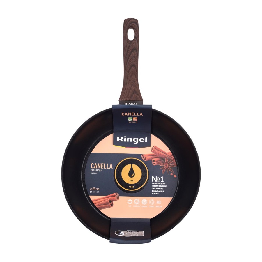 В кожну сковороду RINGEL інтегрована перша в світі система дозування олії. Найменша поділка системи відповідає 5 мл олії, а більша – 10 мл олії. За допомогою цієї системи ви зможете легко та швидко приготувати водночас здорові та смачні страви з використання мінімуму жиру та з максимальним збереженням корисних речовин у страві.