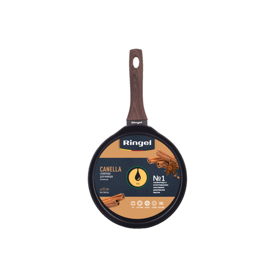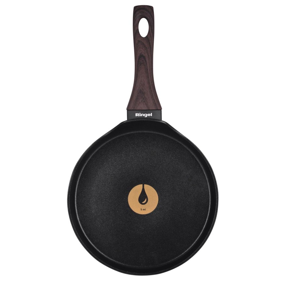 В кожну сковороду RINGEL інтегрована перша в світі система дозування олії. Найменша поділка системи відповідає 5 мл олії, а більша – 10 мл олії. За допомогою цієї системи ви зможете легко та швидко приготувати водночас здорові та смачні страви з використання мінімуму жиру та з максимальним збереженням корисних речовин у страві.