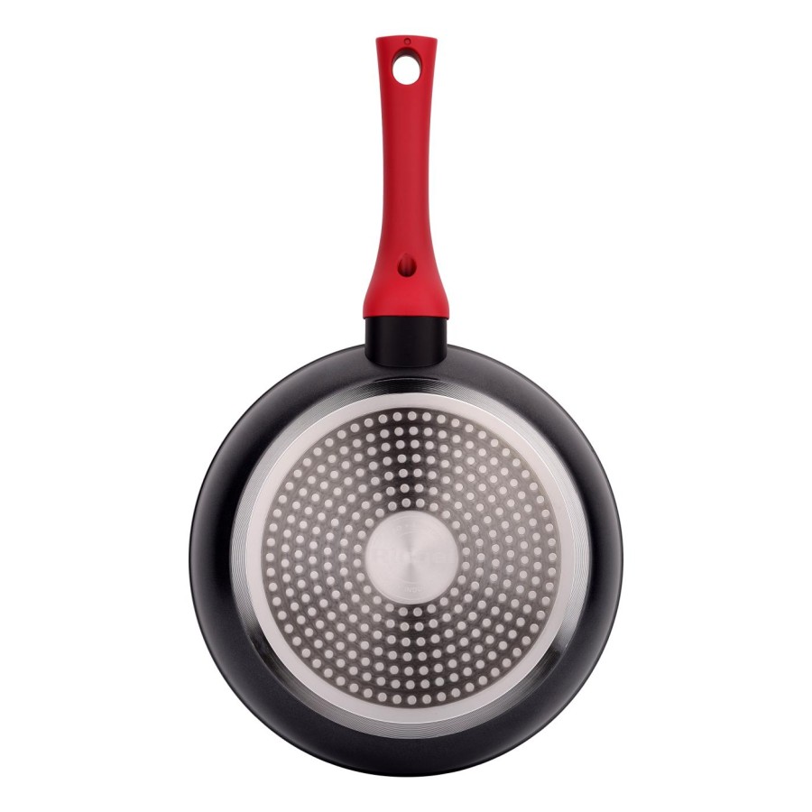 Зручність використання даної сковороди досягається завдяки ергономічній ручці з бакеліту. Додаткове покриття soft-touch, крім тактильного задоволення, захищає руки від опіків і дозволяє не вислизає навіть з вологих долонь. А червоний колір ручки подарує вашій кухні яскравий стильний акцент.