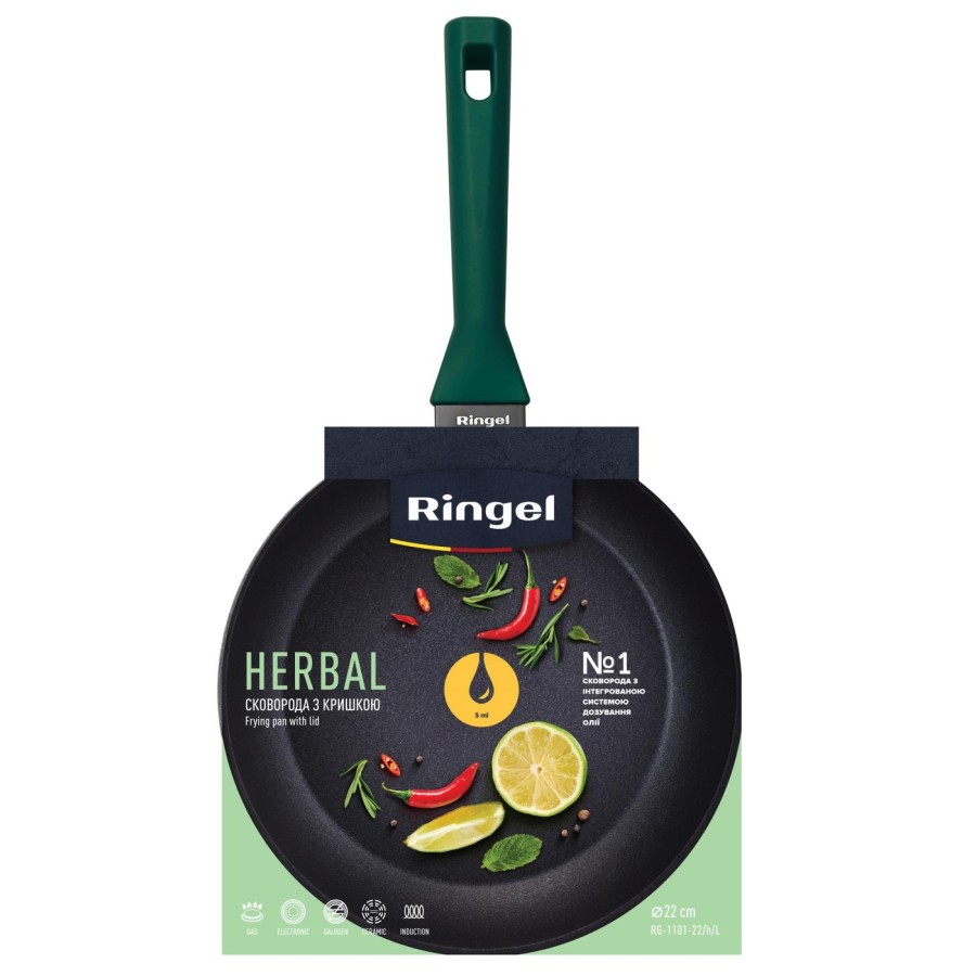 Сковорода RINGEL Herbal глибока 22 см з/кришкою (RG-1101-22/h/L)