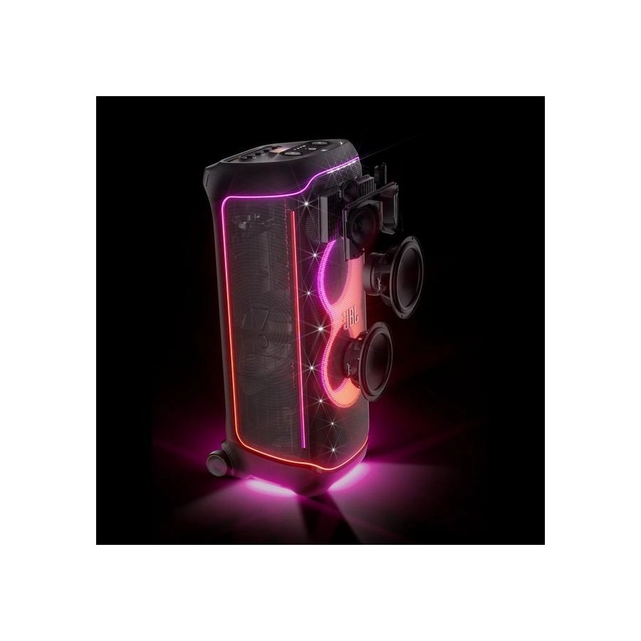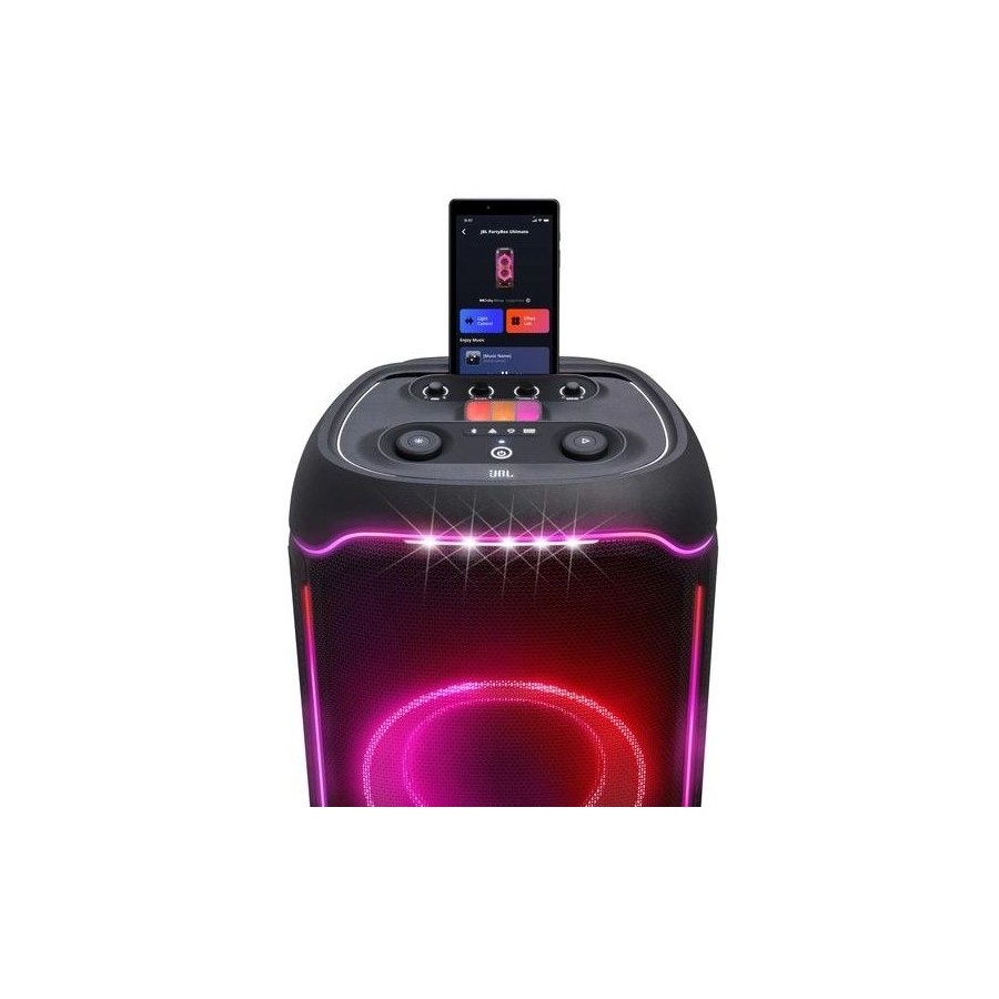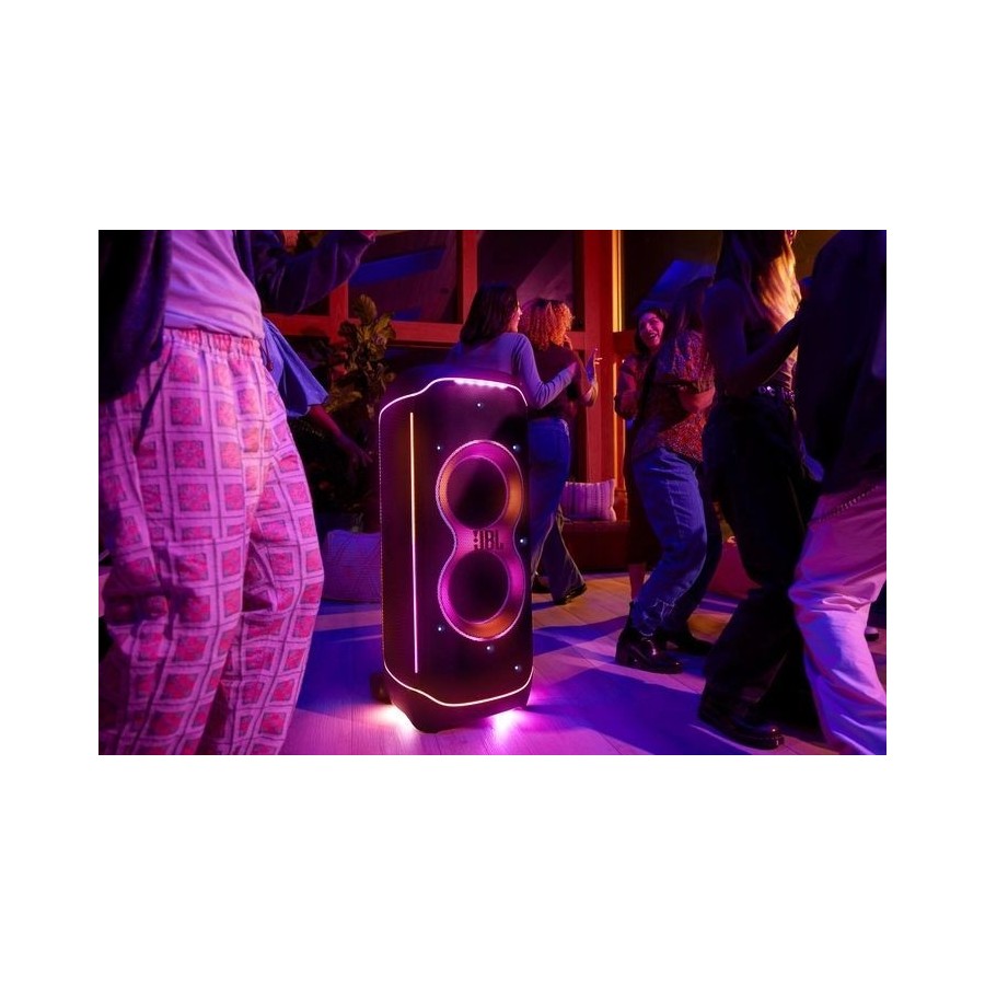 Велика колонка для вечірок з потужним звуком, складним світловим шоу та захистом від бризок. Вечірка без будь-яких обмежень JBL PartyBox Ultimate заповнює весь простір навколо вас неймовірним звуком JBL Original Pro Sound. А об'ємне звучання Dolby Atmos, яке можна передавати через Wi-Fi, здатне просто занурити всіх у музику. Адже кожен, хто прийшов на вечірку, чекає від неї потужного саунду, навіть якщо він не відривається на танцполі, а розважається десь поруч.