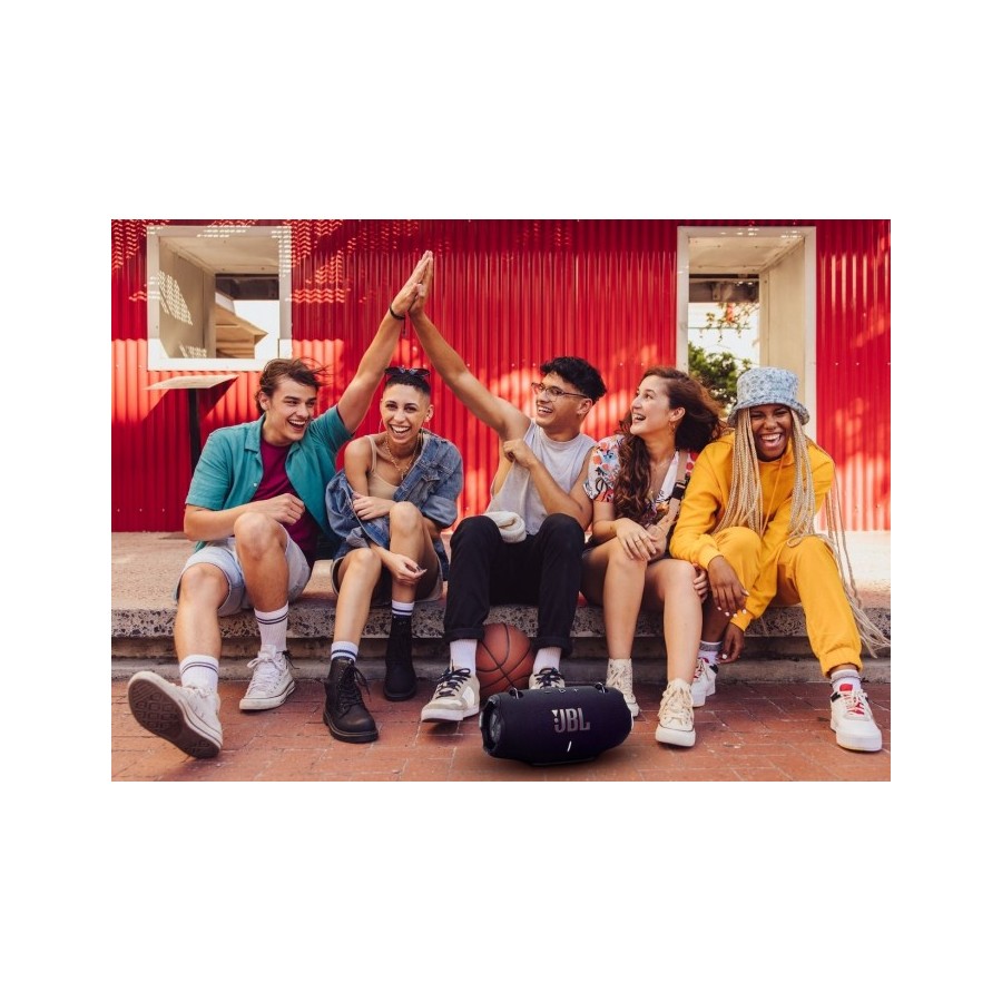Ваші музичні пригоди можуть тривати цілий день. Візьміть JBL Xtreme 4 з собою з кімнати в кімнату, на вечірку на задньому дворі або на пляж. Завдяки 24-годинній автономній роботі ви зможете слухати музику, поки сонце не зайде і не зійде знову, перш ніж вам знадобиться підзарядка. Просто торкніться функції Playtime Boost, щоб подовжити час відтворення, збільшивши час роботи від акумулятора на 6 годин. Він налаштовує та оптимізує продуктивність для гучнішого та чіткішого звучання.