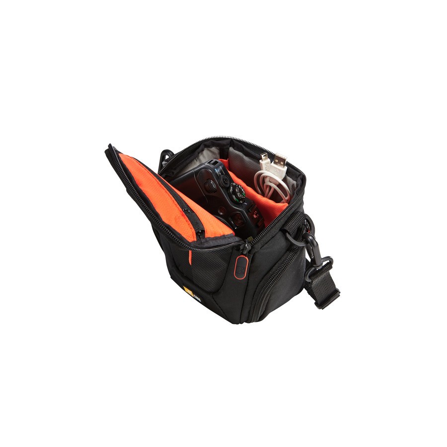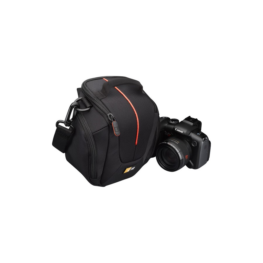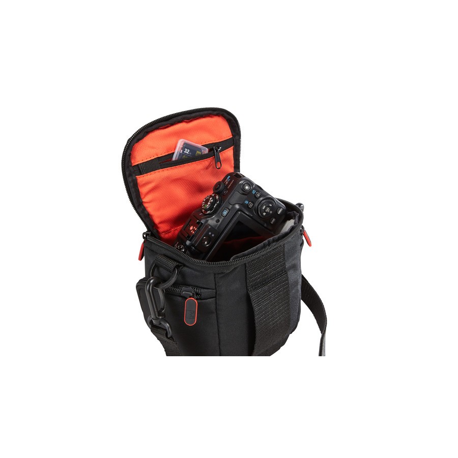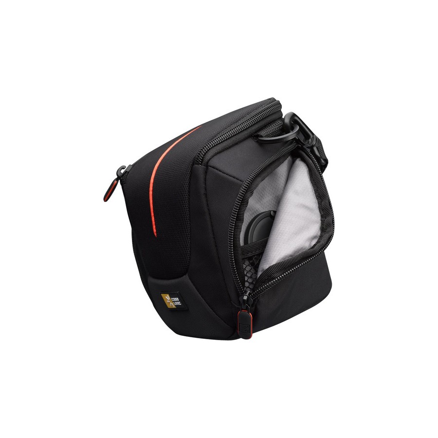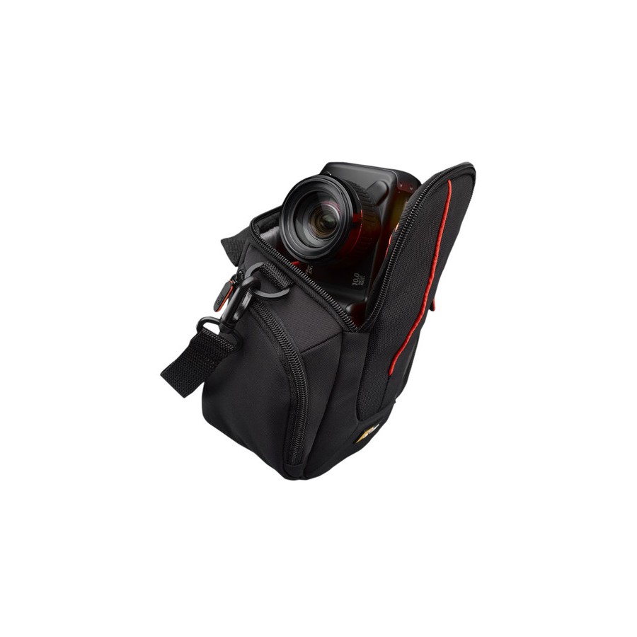 Цей чохол з помітним червоним малюнком підійде для більшості компактних відеокамер, гібридних камер і цифрових камер з потужними об'єктивами. Для забезпечення зручності перенесення передбачений отвір для ременя або знімний ремінець. В чохлі достатньо місця для зберігання шнурів і аксесуарів.