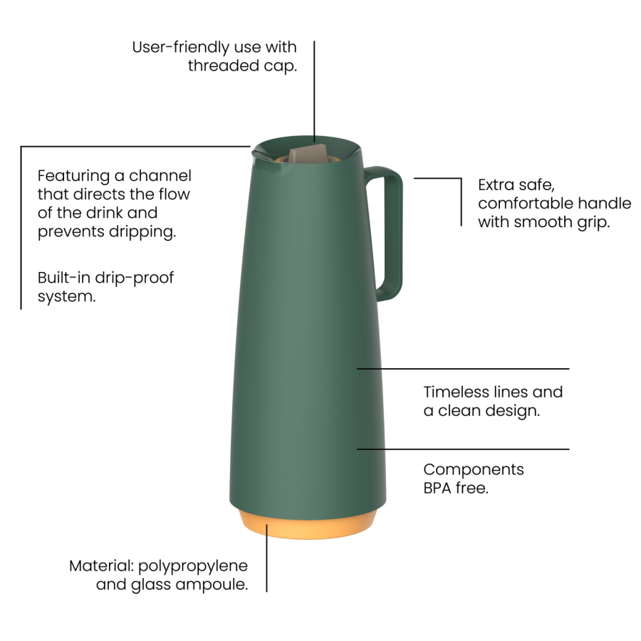- Ідеально для тривалого зберігання гарячих або холодних рідин при потрібній температурі.