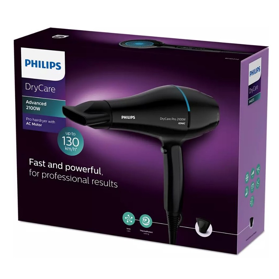 Фен Philips Pro має високоефективний двигун змінного струму, створений для професійного ринку. Він досягає швидкості повітря до 130 км/год* для швидких і ефективних результатів.