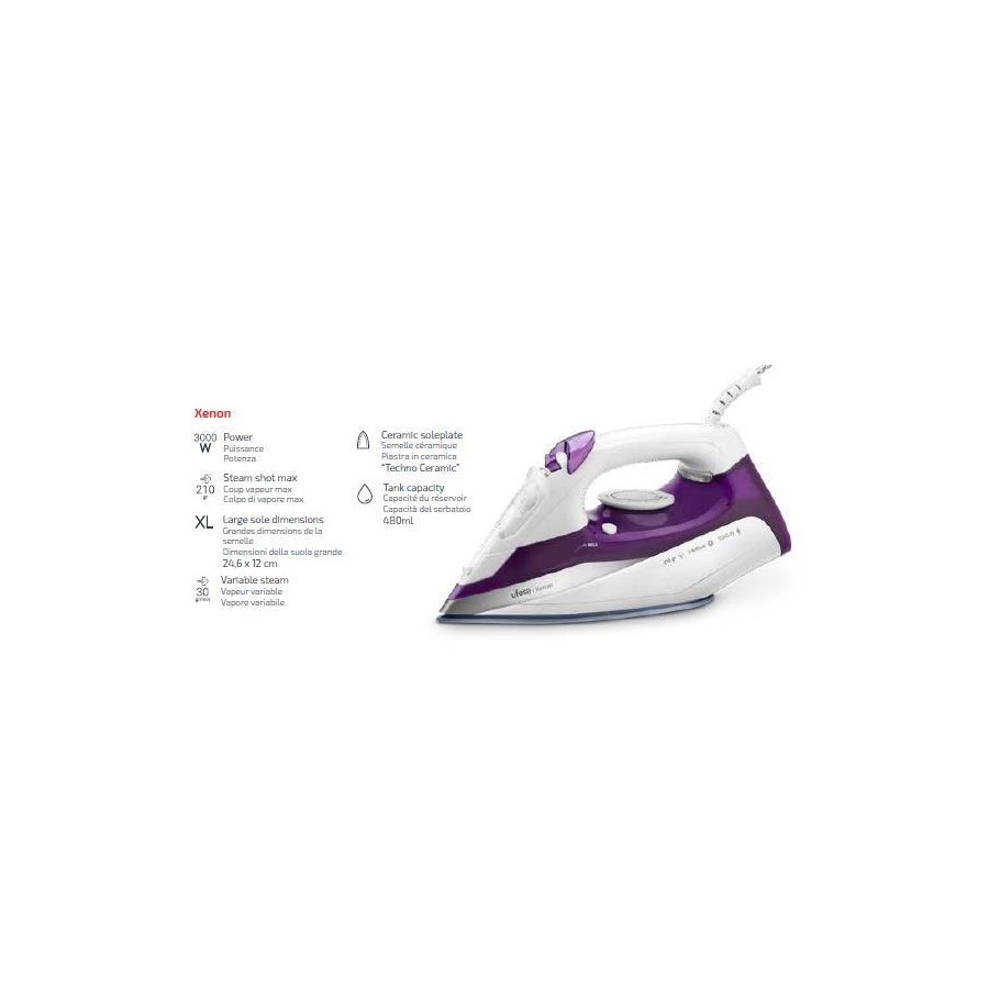 З паровою праскою Xenon ваш одяг буде виглядати ідеальним. Жодна складка не встоїть перед потужністю 3000 Вт, а 210 грамів пара розгладять навіть найскладніші прим'ятості. Крім того, завдяки регульованій подачі пари 30 г/хв, ви отримаєте свій одяг без складок легко та просто. Парова праска оснащена системою захисту від накипу 3-в-1 (система самоочищення, ударний захист від накипу та картридж для захисту від накипу) та системою захисту від крапель (не залишає плям води на тканинах). Керамічна підошва Techno Ceramic забезпечує легке ковзання та максимальний догляд за вашим одягом.