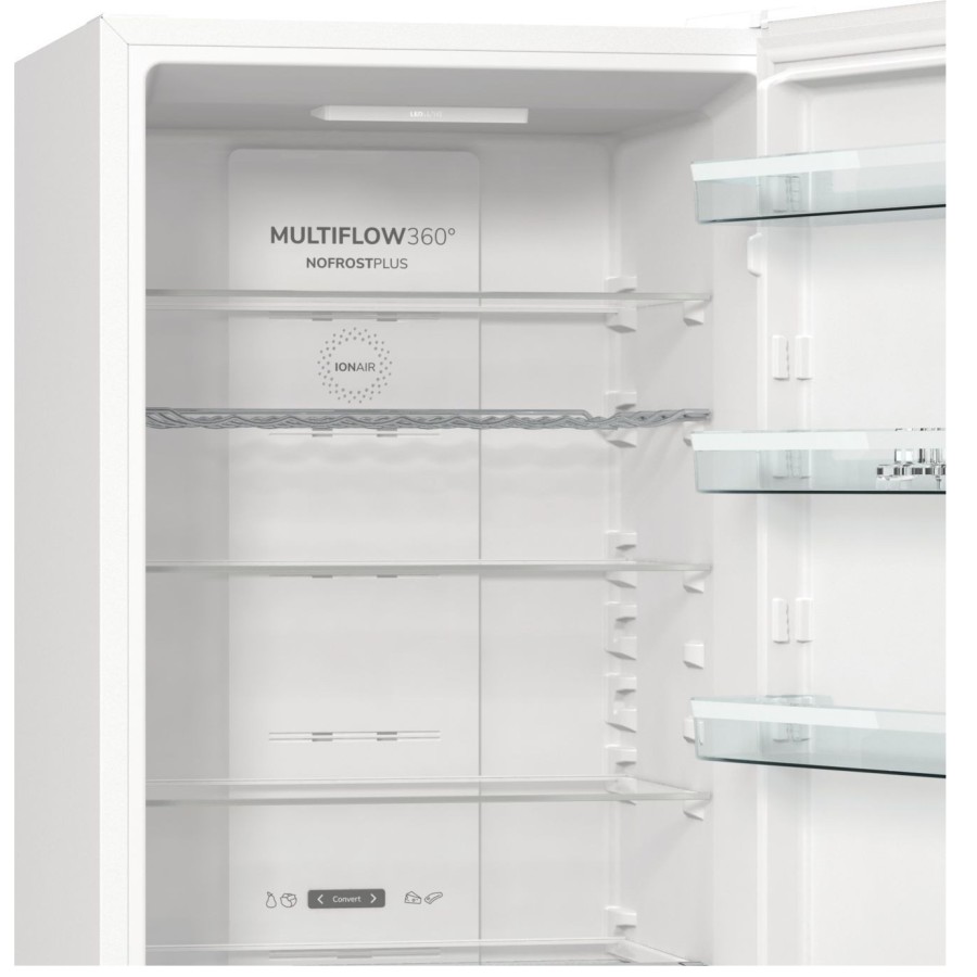 Іонізатор IonAir створює усередині приладу негативно заряджені іони, які рівномірно розподіляються по всьому холодильному відділенню за допомогою нової системи вентиляції MultiFlow 360°. Повітря, збагачене аніонами, зберігає смак продуктів і видаляє неприємні запахи.