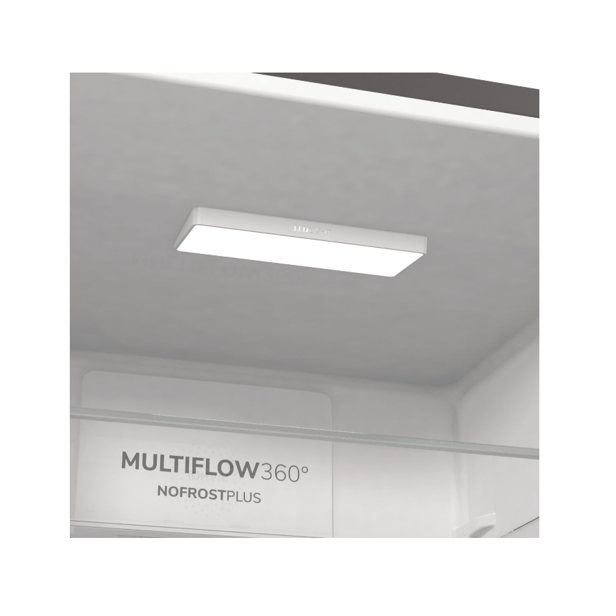 Іонізатор IonAir створює усередині приладу негативно заряджені іони, які рівномірно розподіляються по всьому холодильному відділенню за допомогою нової системи вентиляції MultiFlow 360°. Повітря, збагачене аніонами, зберігає смак продуктів і видаляє неприємні запахи.