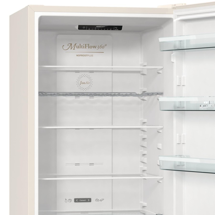 Доведено, NoFrost - одна з кращих систем охолодження на ринку, яка запобігає утворенню інею. З огляду на, що вона пропонує набагато більше, ніж стандартні моделі NoFrost, ми назвали цю систему NoFrost Plus. Холодильне відділення додатково оснащено системами IonAir і MultiFlow 360°, щоб підтримувати ідеальний мікроклімат для збереження свіжості продуктів.
