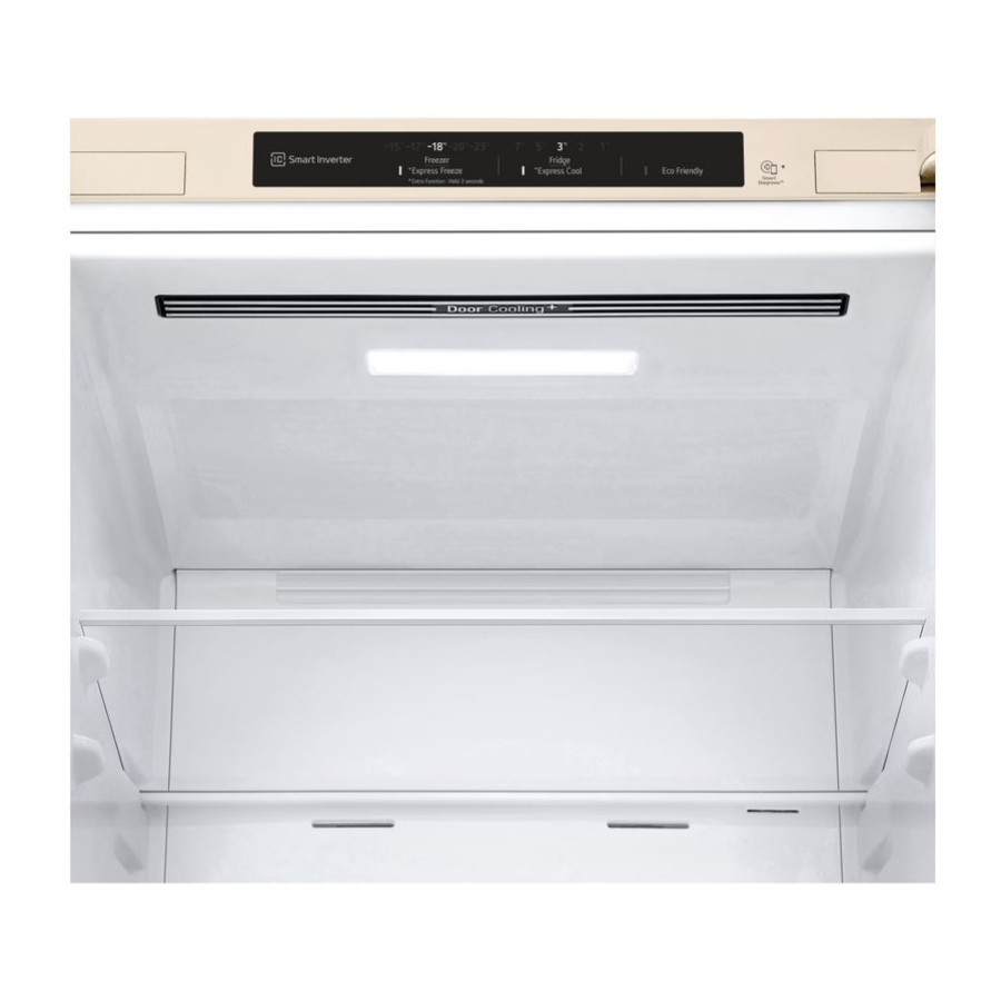 *На підставі результатів UL тесту, відповідно до внутрішнього методу LG, який порівнює час, необхідний для зниження температури верхнього дверного кошика з 24.8°C до 8°C між моделлю LG без DoorCooling+ (GBB60NSZHE) та моделлю з технологією DoorCooling+ (GBB72NSDFN)