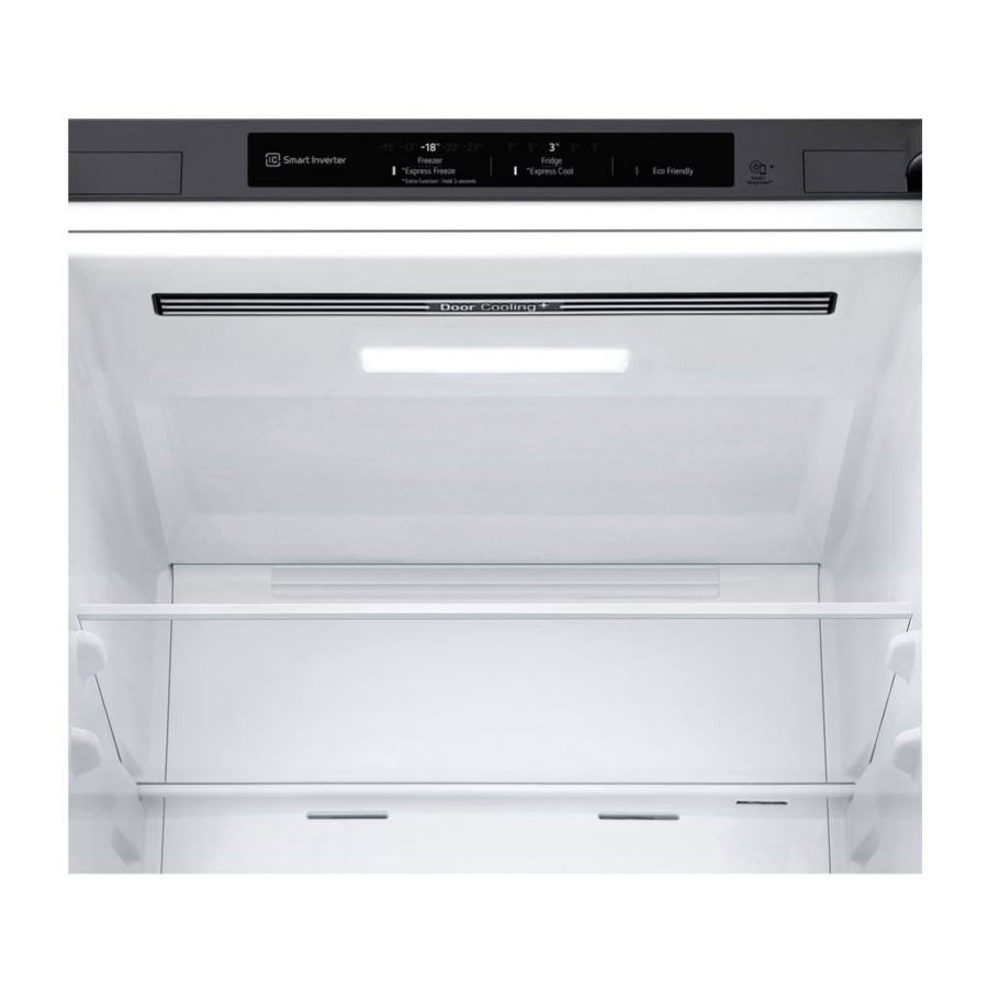 *На підставі результатів UL тесту, відповідно до внутрішнього методу LG, який порівнює час, необхідний для зниження температури верхнього дверного кошика з 24.8°C до 8°C між моделлю LG без DoorCooling+ (GBB60NSZHE) та моделлю з технологією DoorCooling+ (GBB72NSDFN).