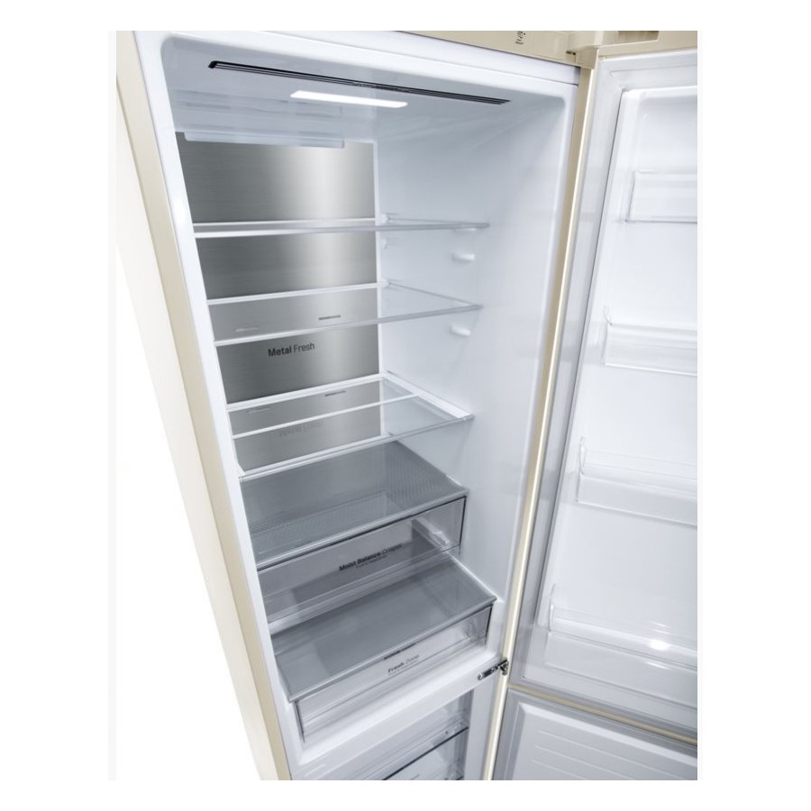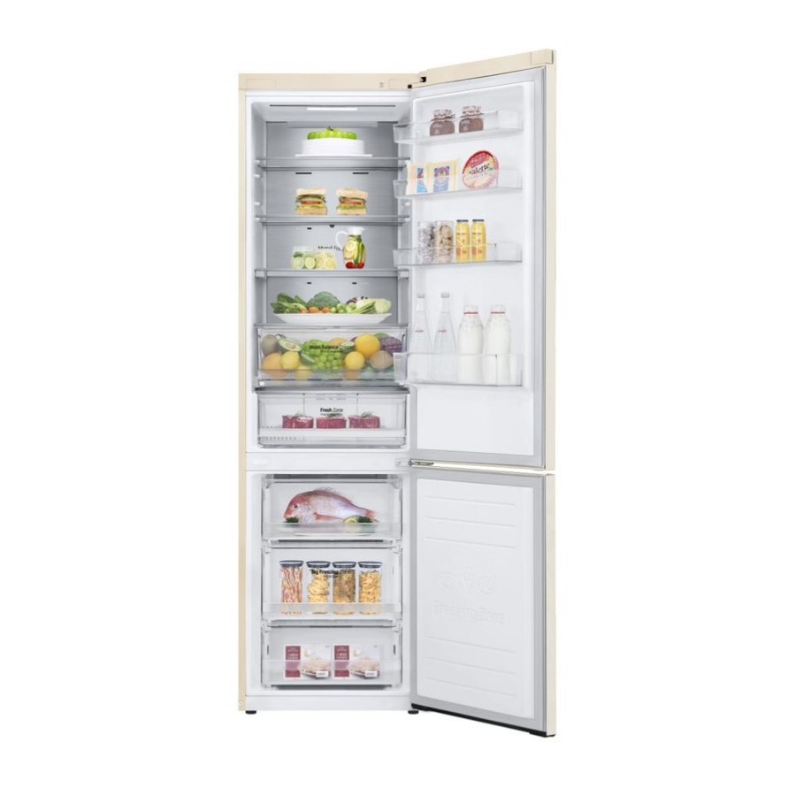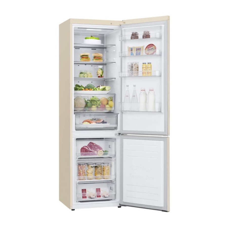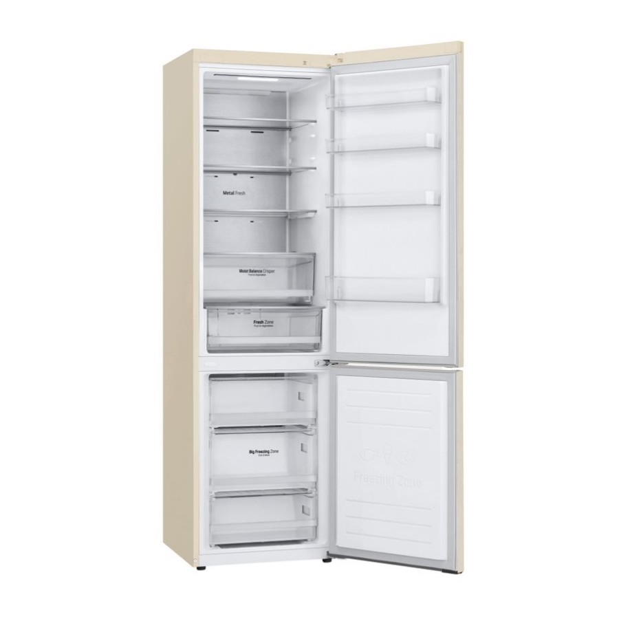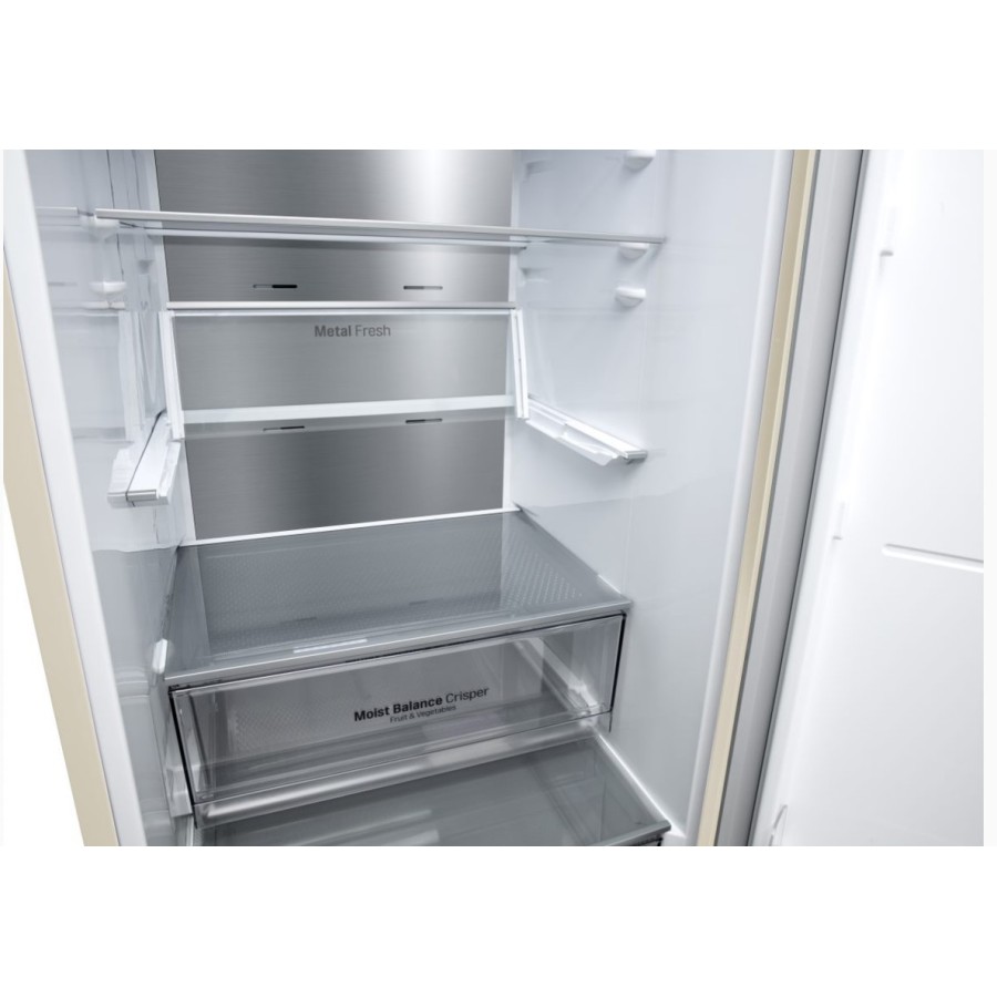 Холодильник LG GC-B509SESM має стильний бежевий колір, що гармонійно впишеться в інтер'єр будь-якої кухні. При висоті 203 см, ширині 59,5 см та глибині 68,2 см, він займає мінімум простору, забезпечуючи при цьому максимальну функціональність. Вага холодильника без упаковки становить 75 кг, а в упаковці - 83 кг.