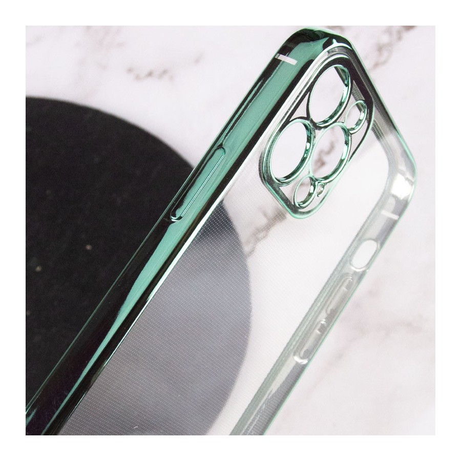 Прозрачный силиконовый чехол глянцевая окантовка Full Camera для Apple iPhone 13 Pro Max (6.7") (Зеленый)