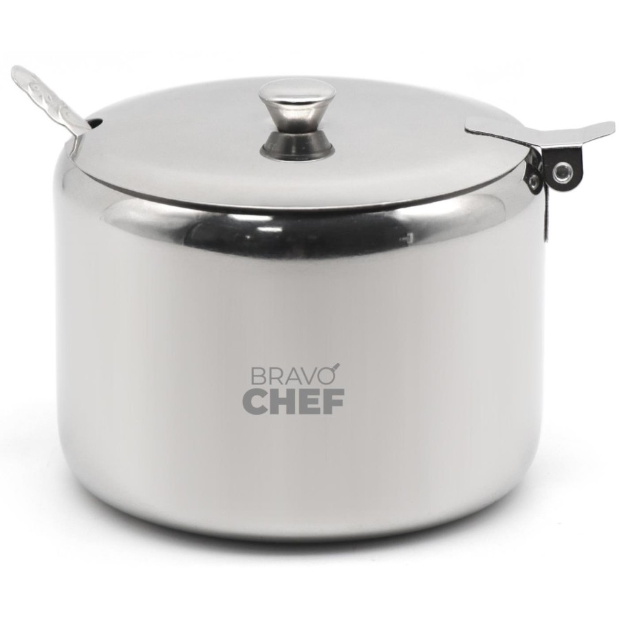 Цукорниця BRAVO CHEF забезпечує гігієгієнічне та безпечне зберігання цукру, запобігаючи його зволоженню, забрудненню, попаданню до складу сторонніх часток. До того ж вона має стильний, привабливий дизайн, що прикрасить кожний стіл і додасть шарму кухні.