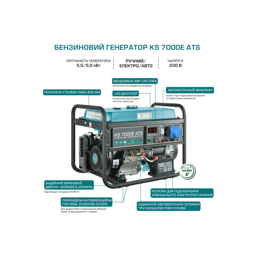 Könner & söhnen бензиновий генератор ks 7000e ats, 230в, 5.5кВт, АТС, електростартер, 76.8кг