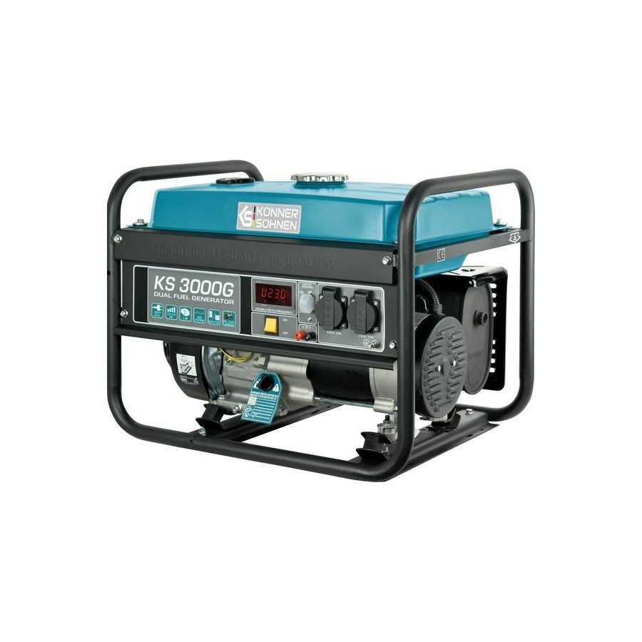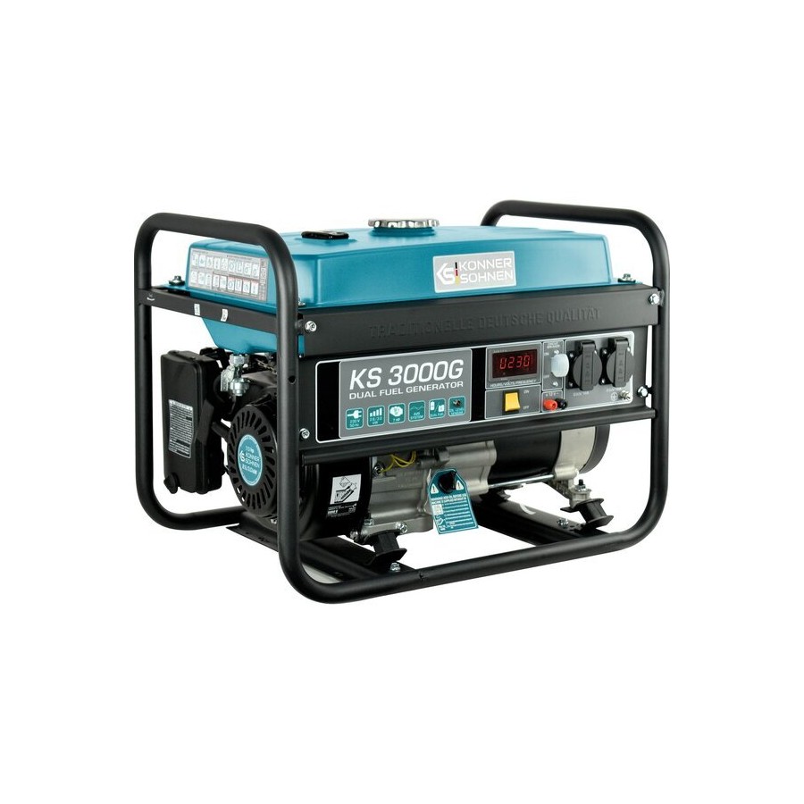 Газобензинові генератори Könner & Söhnen серії Dual Fuel найбільш популярні серед покупців через свою економічність та екологічність. Ви можете використовувати генератор як на бензині, так і на зрідженому газі (пропан-бутан). Експлуатація генератора на газу підвищує моторесурс двигуна. Все необхідне для підключення балона йде в комплекті: генератор оснащений регулятором нульового тиску, шлангом зі знижувальним редуктором. Необхідно тільки під’єднати генератор до Вашого газового балона. Генератор не призначений для підключення до газової магістралі. При необхідності газобензинові моделі легко перемкнути на роботу на бензині. Потужний одноциліндровий 4-х тактний двигун K&S з повітряним охолодженням забезпечує стабільну та надійну роботу генератора.