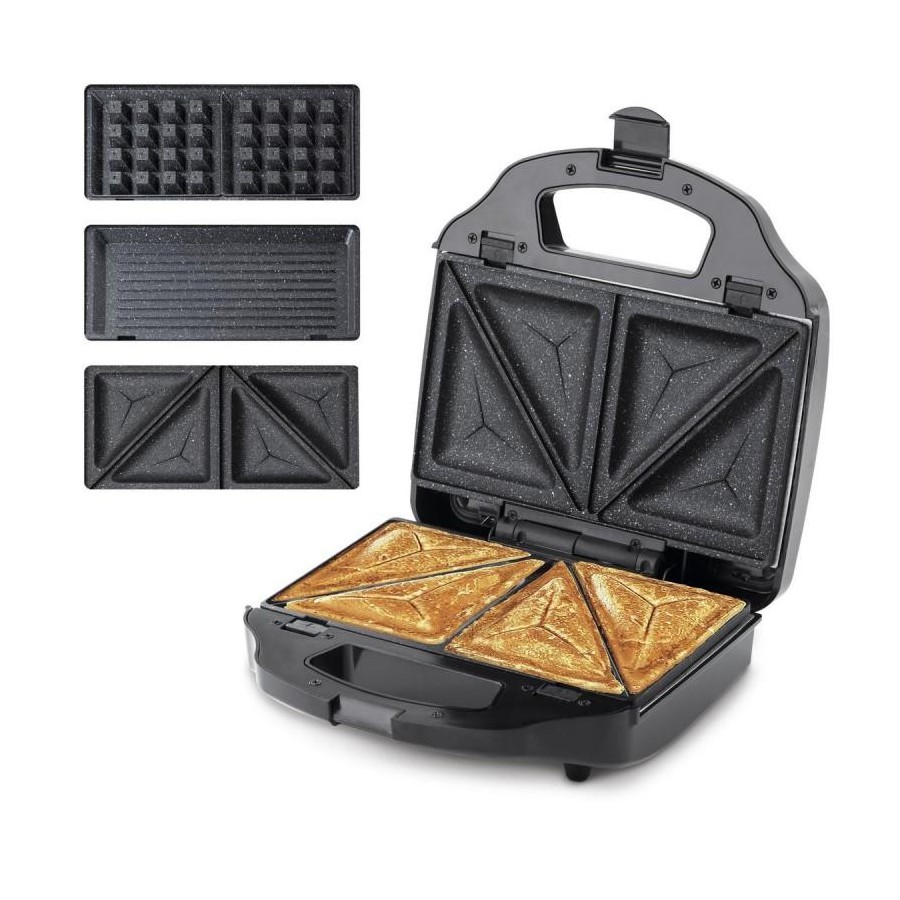Сендвічниця 3 в 1! Готуйте улюблені страви на будь-якій змінній тарілці; від м’яса та овочів на грилі до смачних вафель або навіть індивідуальних сендвічів.