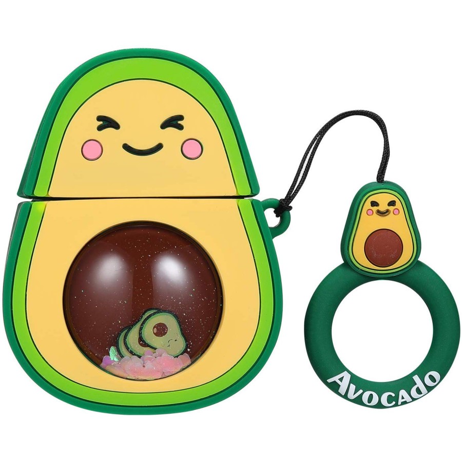 Силіконовий футляр Fruits series with Sparkles & Water для навушників AirPods 1/2 + кільце Avocado / Зелений